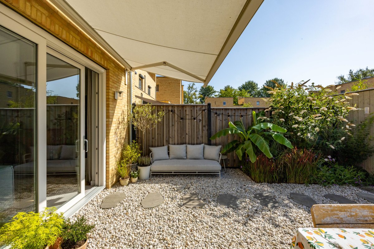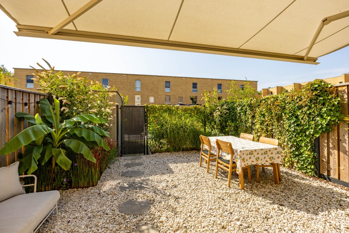 De sfeer van de woning zet zich voort in de zonnige en groene stadstuin welke gelegen is op het zuidoosten.
