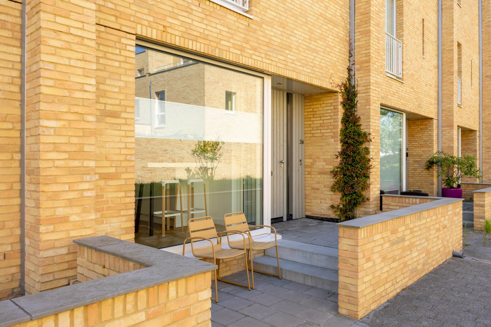 Aan de voorzijde van de woning kun je op de "Groningse stoep" genieten van de avondzon.