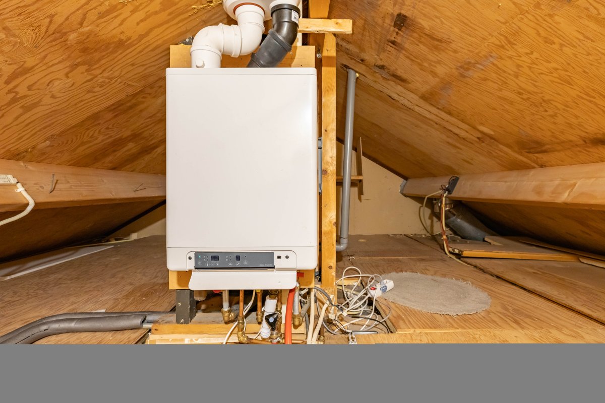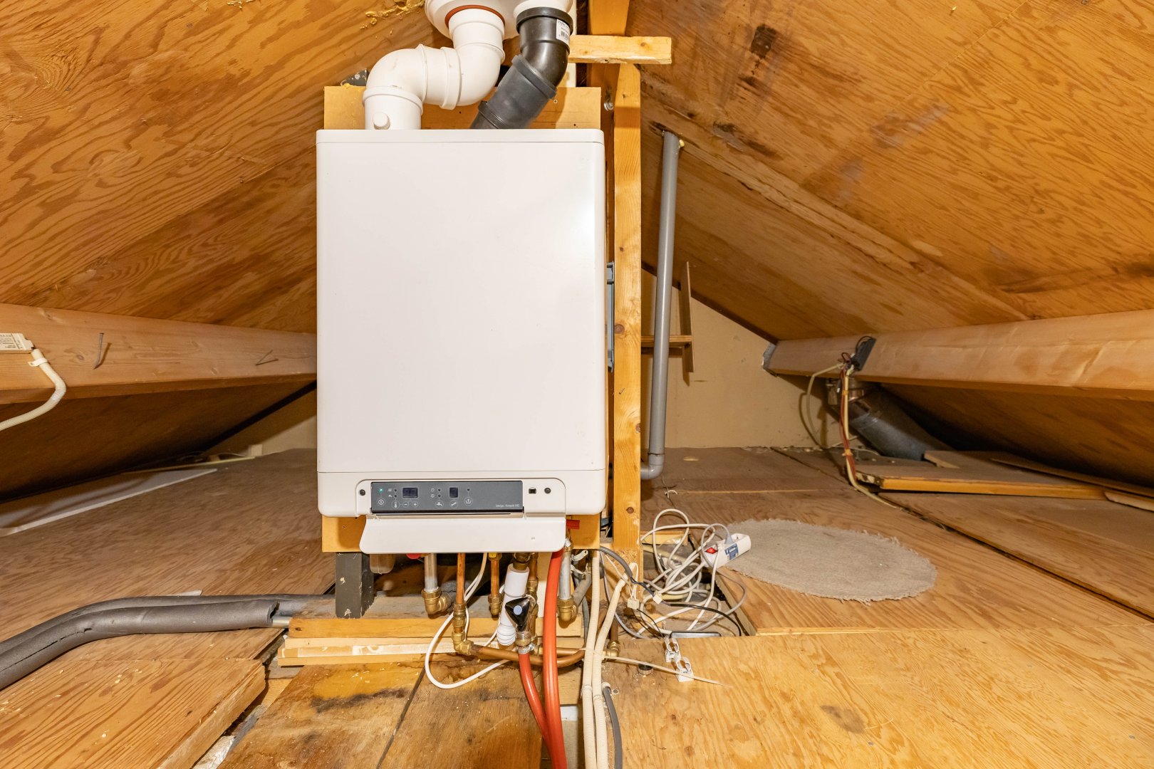 Via een vlizotrap bereik je vanaf de overloop een ruime bergzolder, hier bevindt zich ook de c.v. ketel (2020).