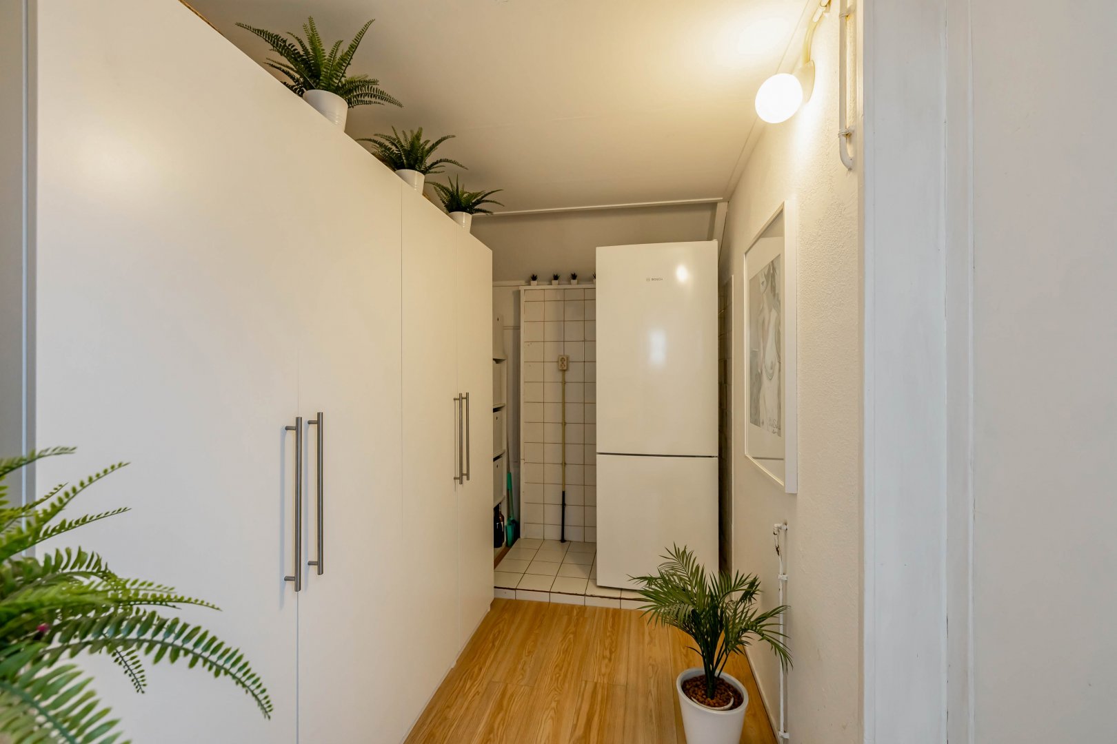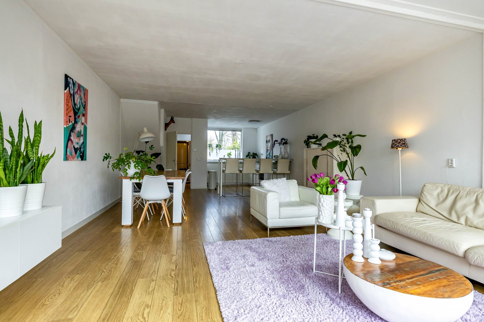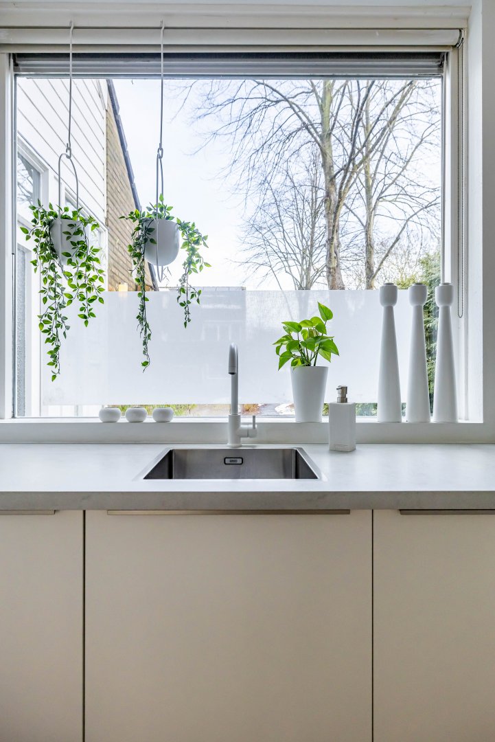 De woonkamer is uitgebouwd waardoor er een fantastische, ruime living (circa 54 m²) met open keuken is ontstaan. Er is ruimte voor een extra grote eettafel en een royaal, tuingericht zitgedeelte. Bij binnenkomst in de woonkamer is de moderne, strakke open keuken uit 2022 een absolute eyecatcher! De lichte wandafwerking geeft het geheel een zeer moderne en stijlvolle uitstraling.