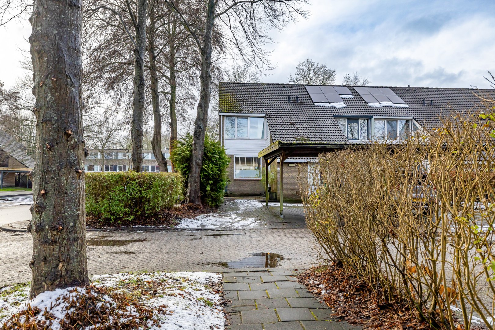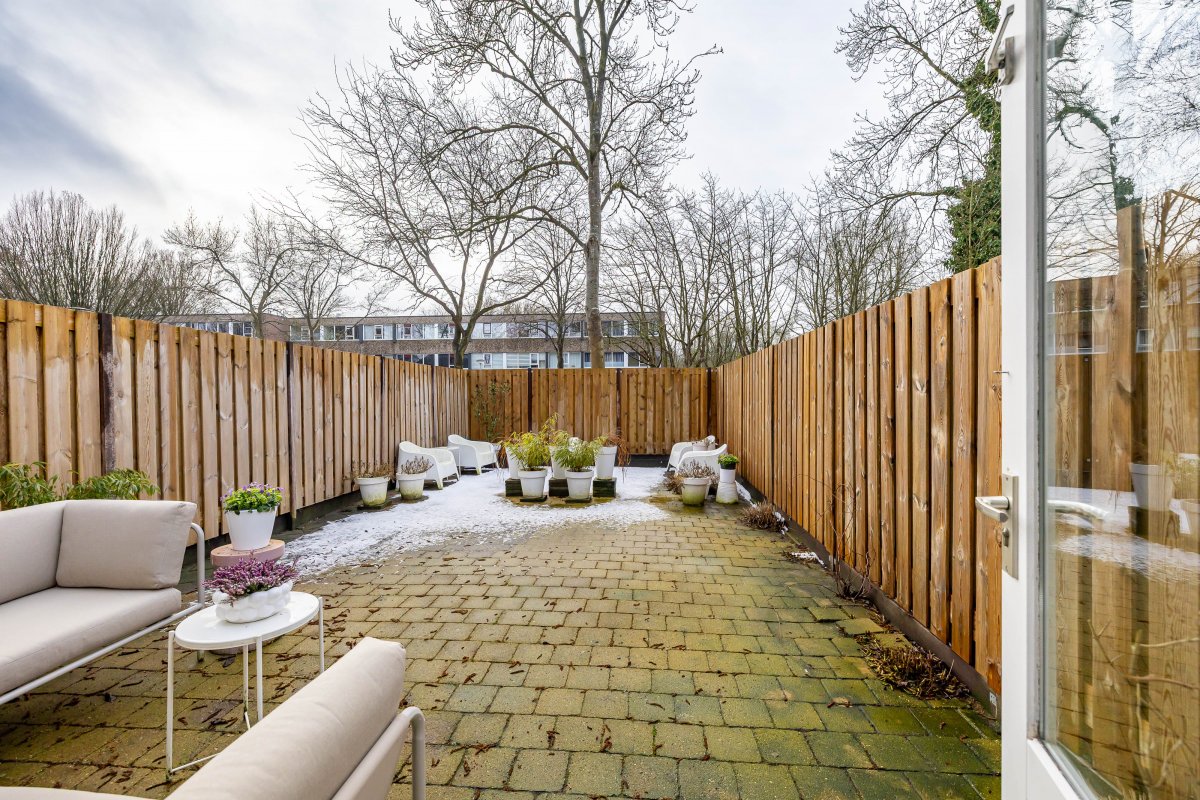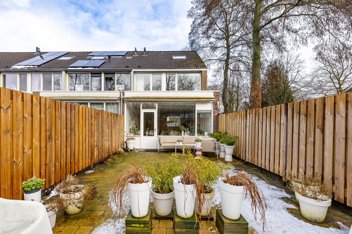 De besloten tuin ligt op het westen, wat betekent dat je hier heerlijk van de middag- en avondzon kunt genieten. De carport en het parkeren op eigen terrein maken het wooncomfort compleet.