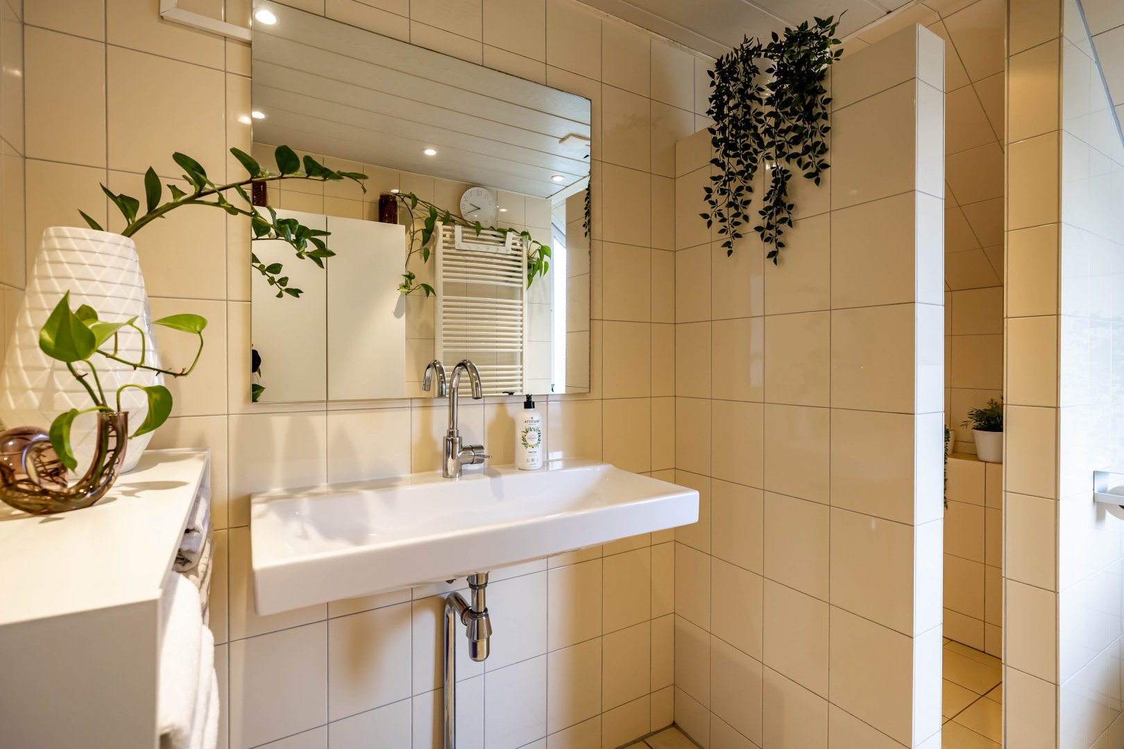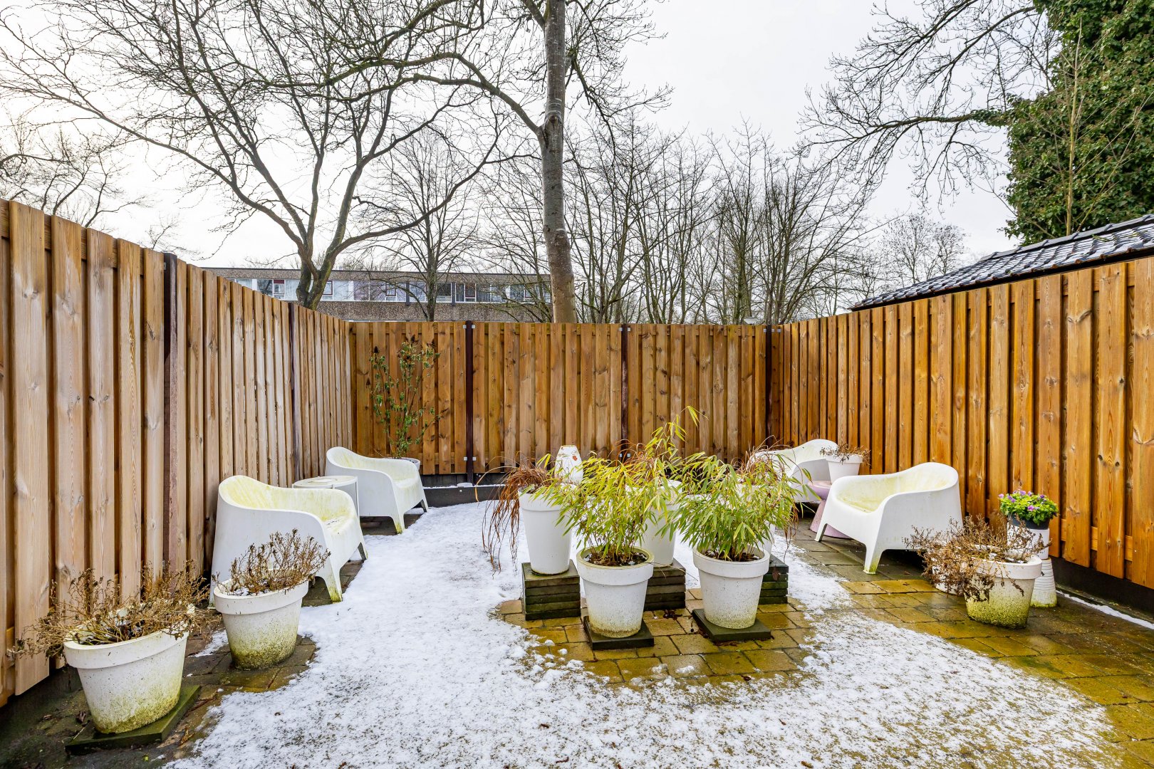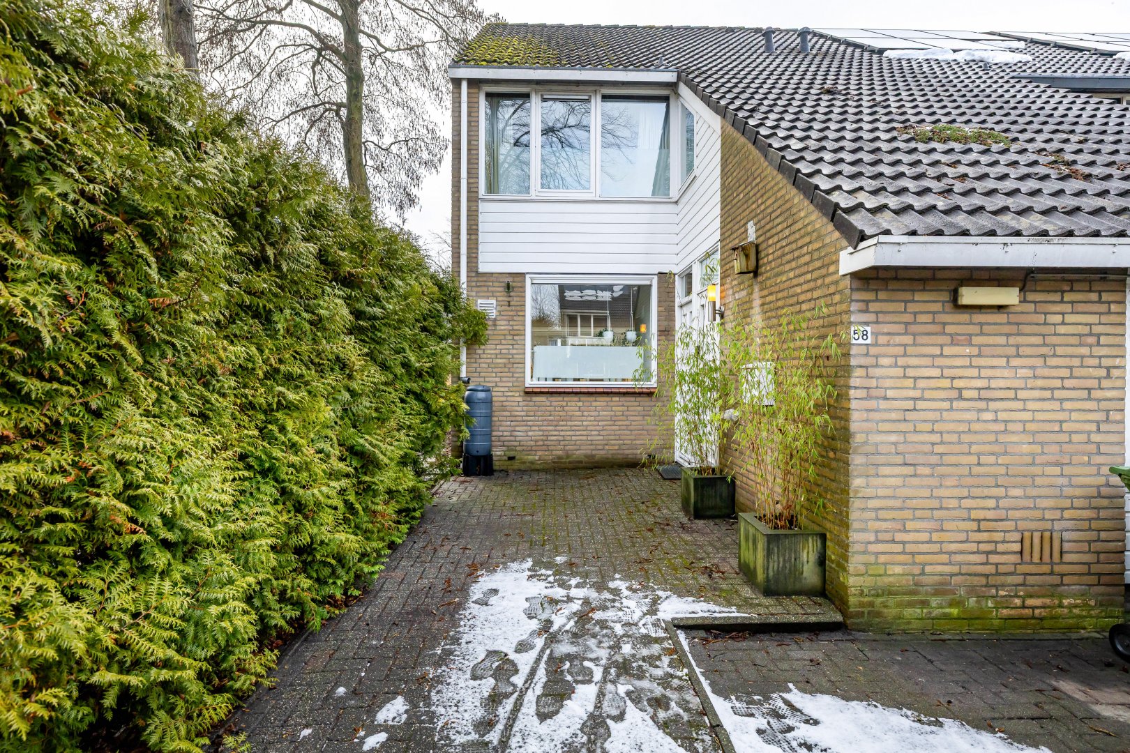 De besloten tuin ligt op het westen, wat betekent dat je hier heerlijk van de middag- en avondzon kunt genieten. De carport en het parkeren op eigen terrein maken het wooncomfort compleet.
