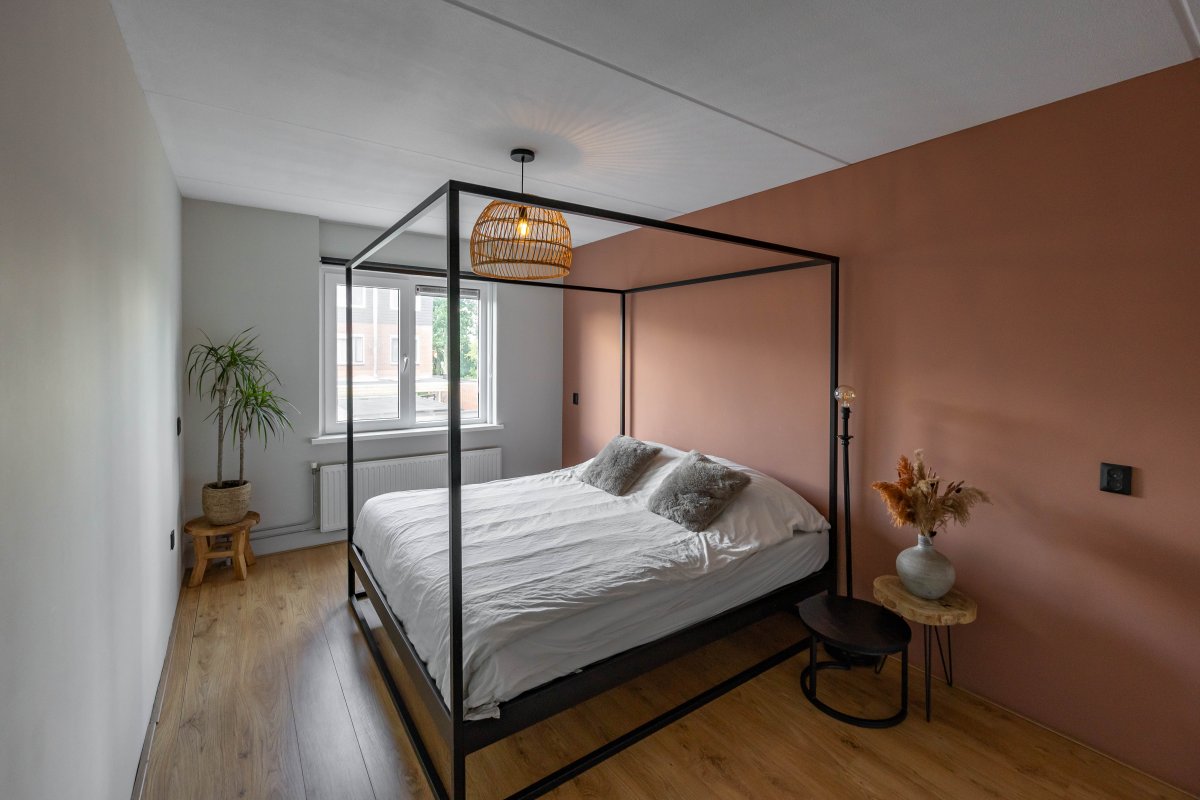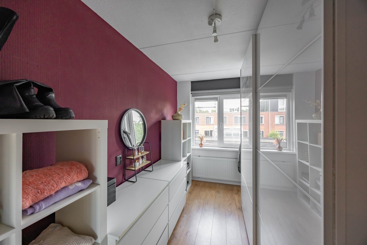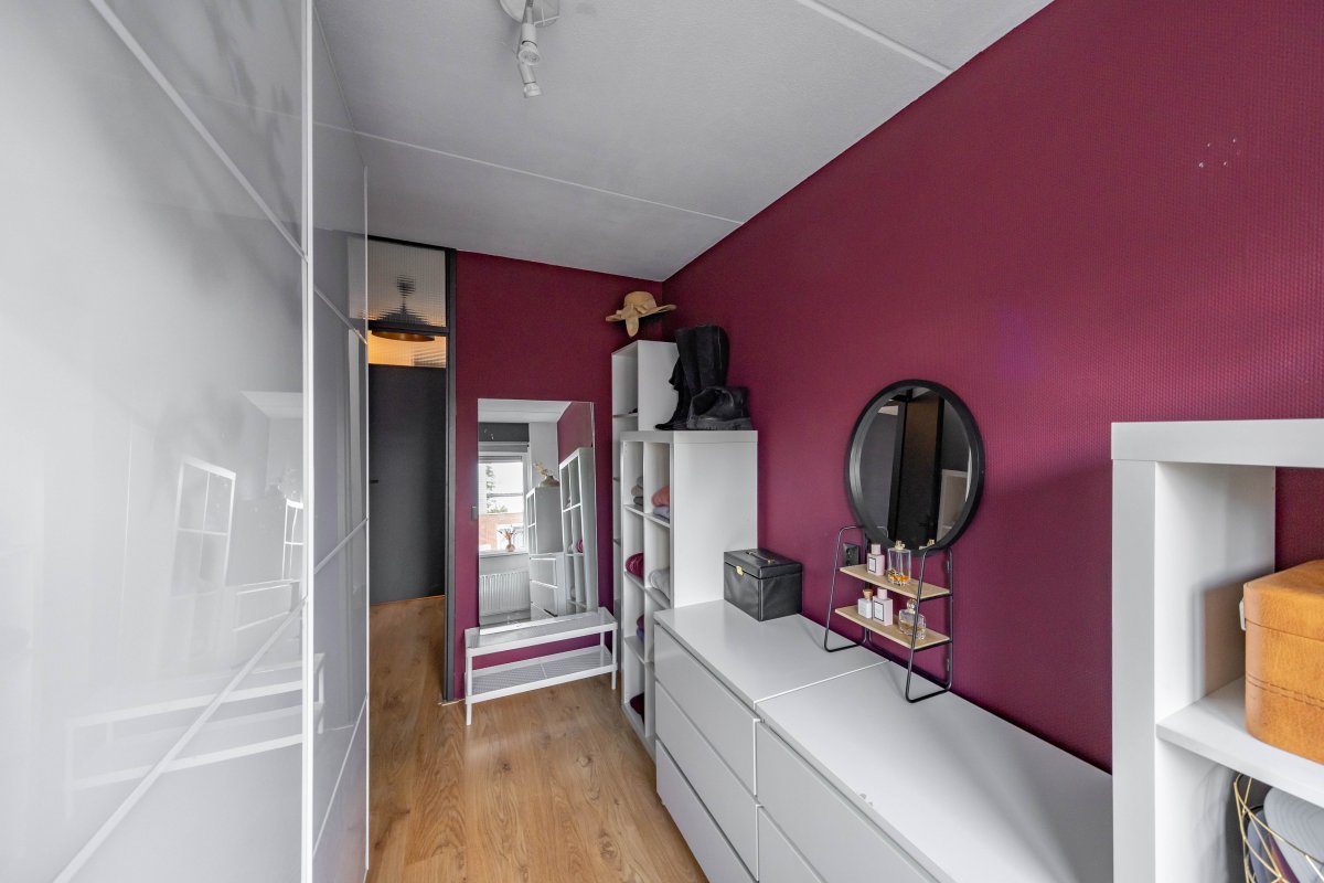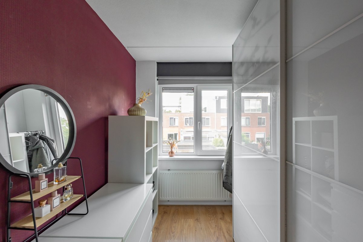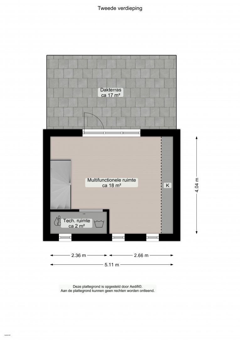 Tweede verdieping: Multifunctionele ruimte / vierde slaapkamer (circa 18 m²) met vaste kastenwand en toegang tot het ruime dakterras (circa 17 m²); technische ruimte met aansluitingen voor witgoed.