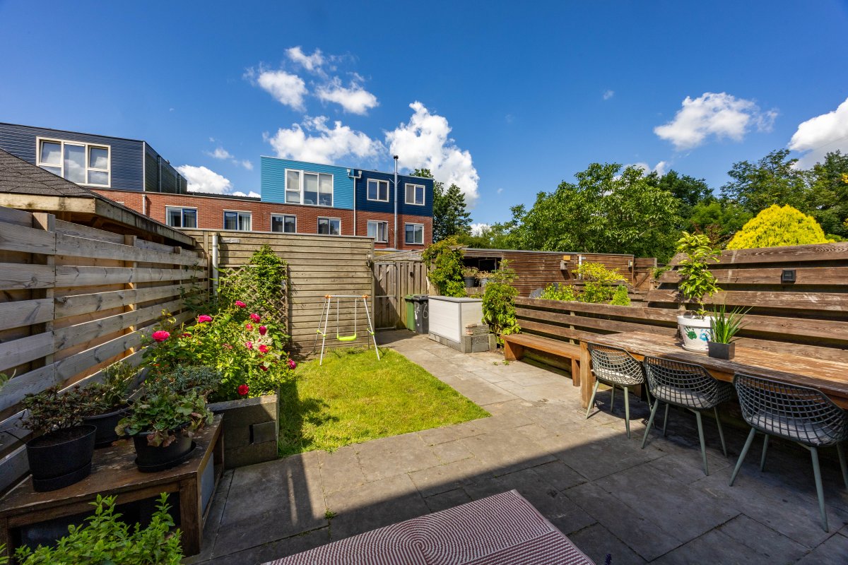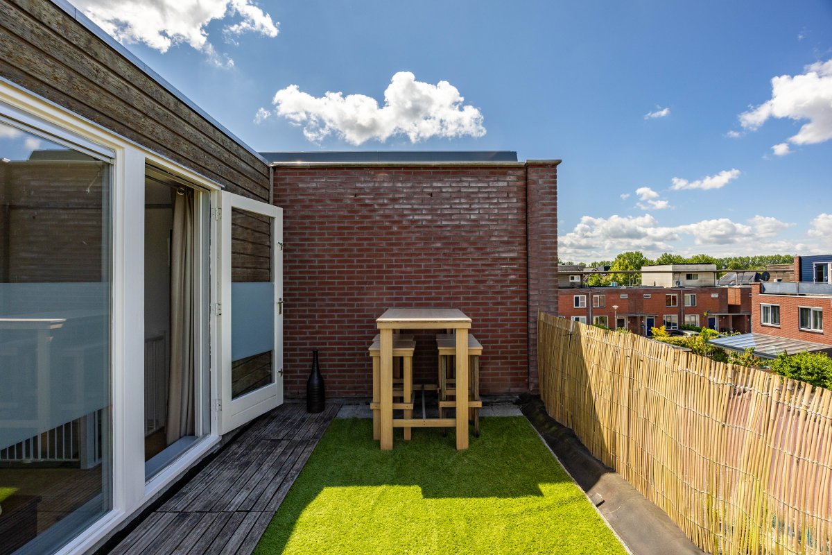 Zowel de besloten achtertuin als het dakterras zijn gunstig gelegen op het zuidwesten — ideaal voor zonliefhebbers!