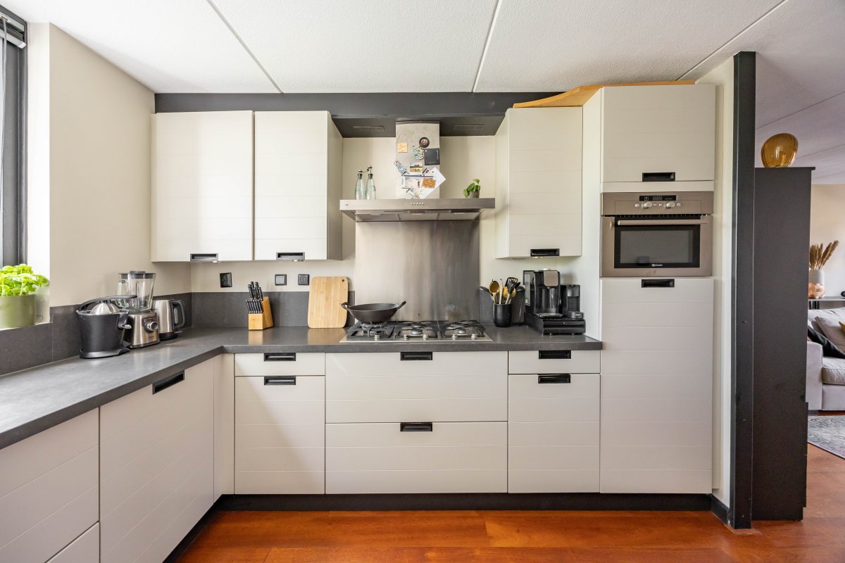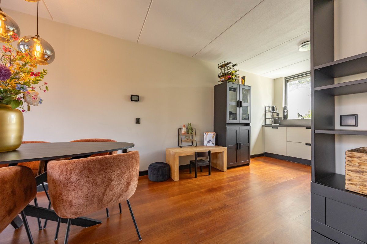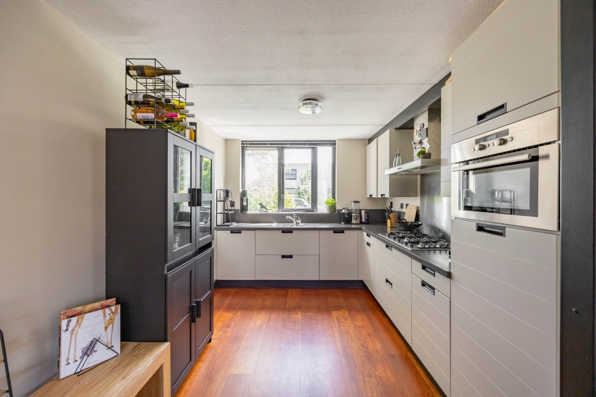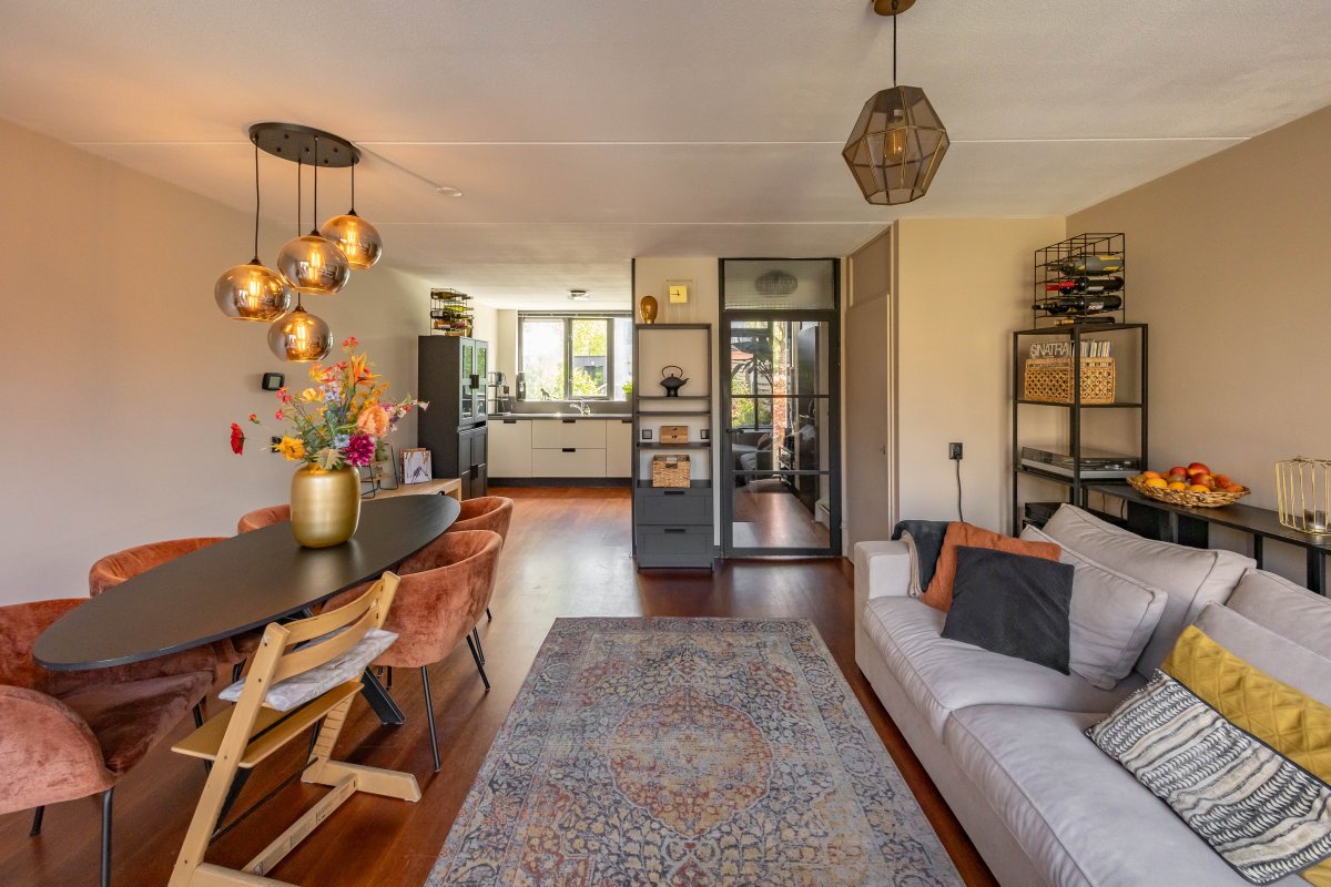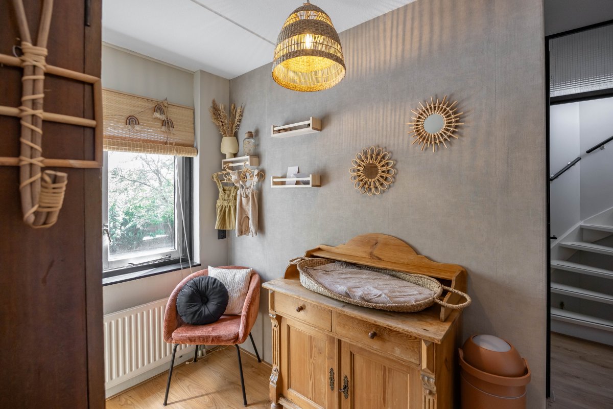 Binnen tref je een moderne open keuken, een ruime en lichte woonkamer met hardhouten vloerdelen op de begane grond en laminaatvloeren op de verdiepingen. De badkamer, gelegen op de eerste verdieping, is voorzien van een ligbad, douchehoek, wastafelmeubel en een tweede toilet.