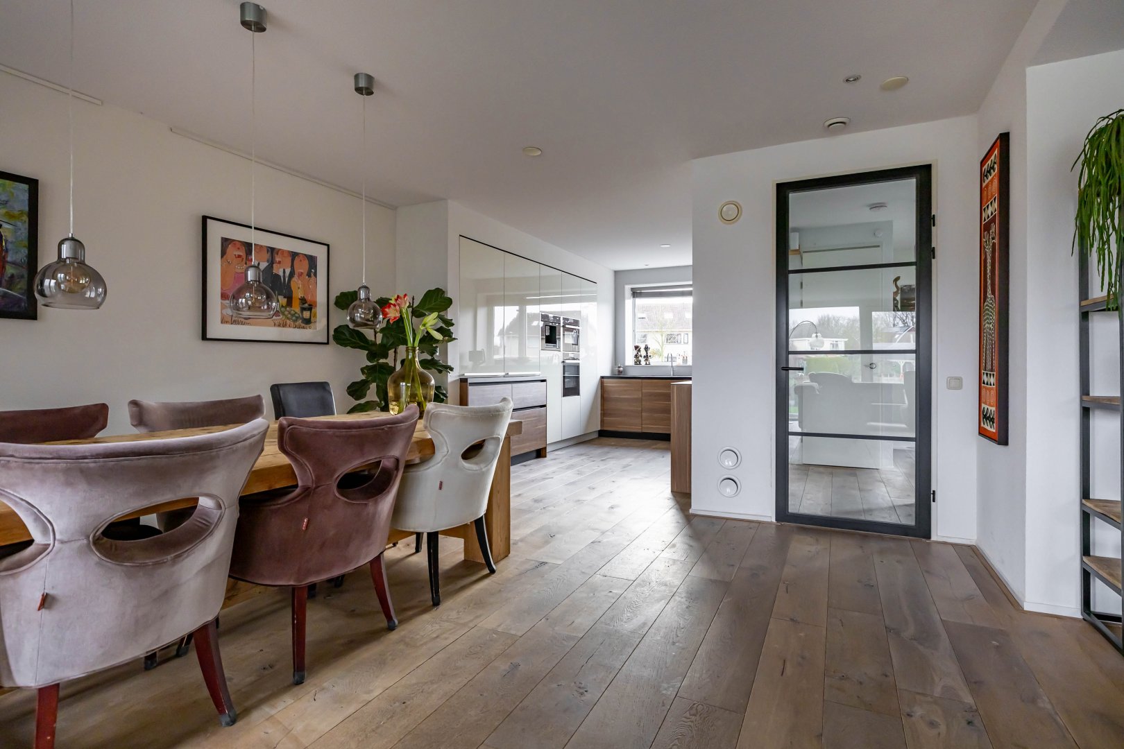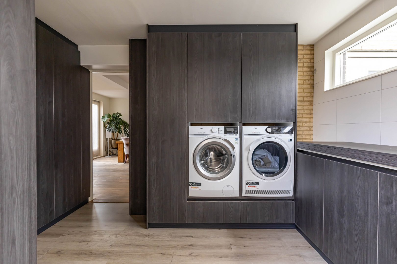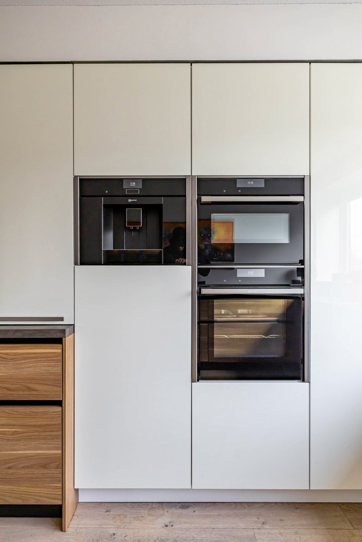 De super-de-luxe keuken (2018) is uitgevoerd met alle denkbare inbouwapparatuur van hoogwaardige kwaliteit en sluit perfect aan bij het moderne en luxe karakter van de woning. Ook de mooi verbouwde bijkeuken verdient vermelding, hier vind je de witgoedaansluitingen en praktische bergruimte.