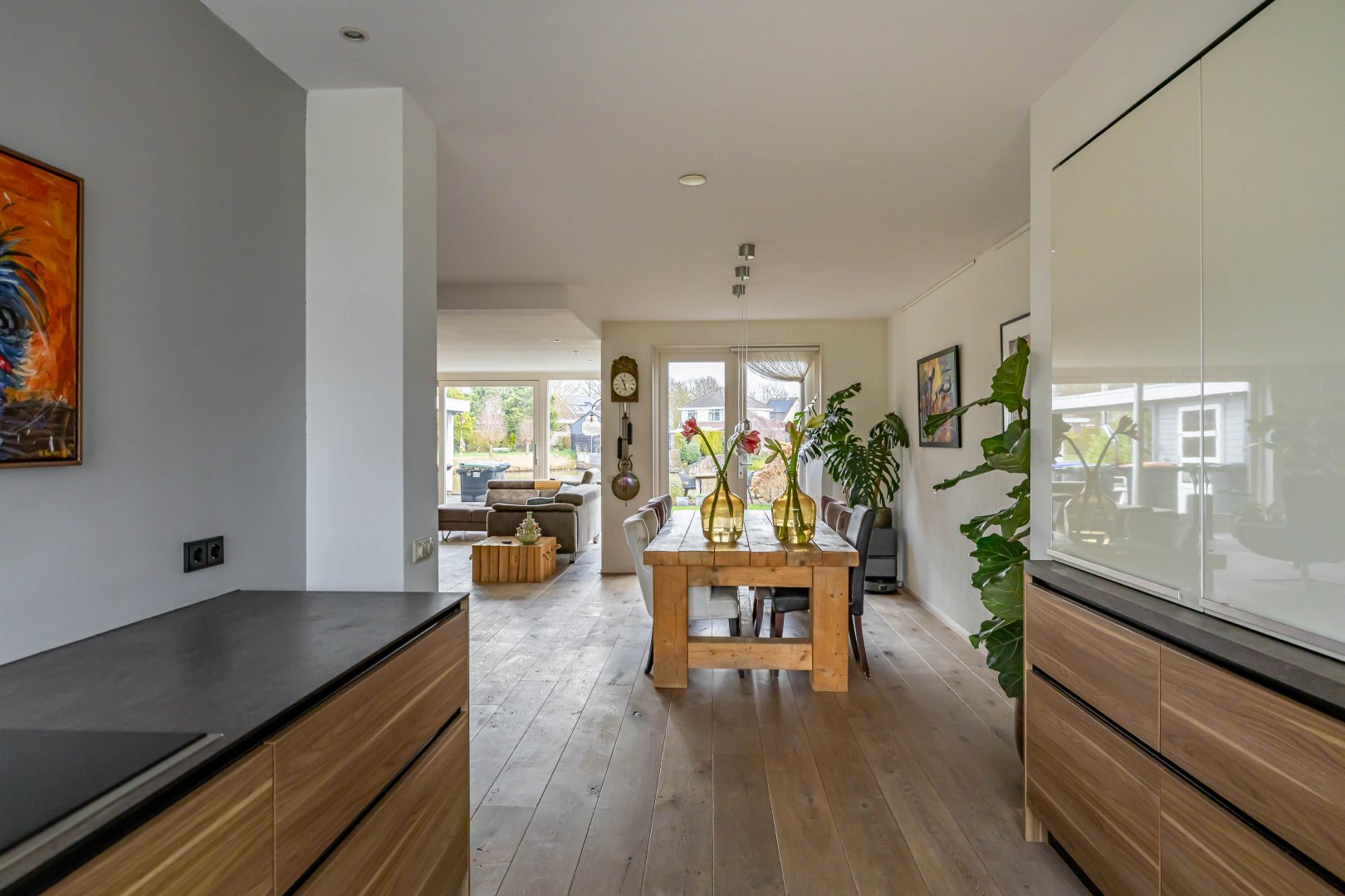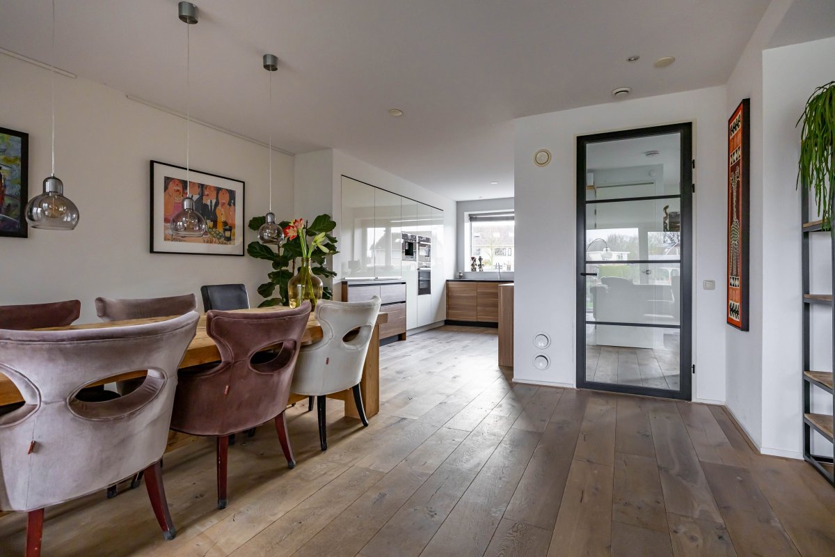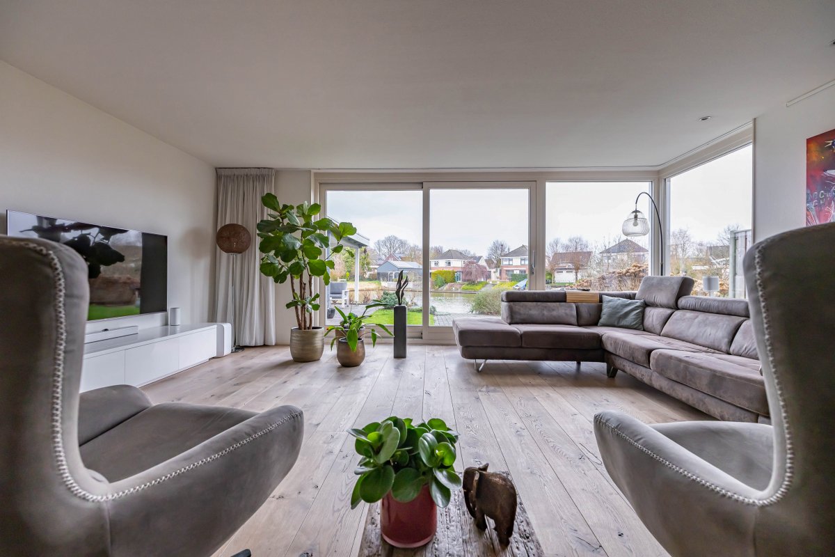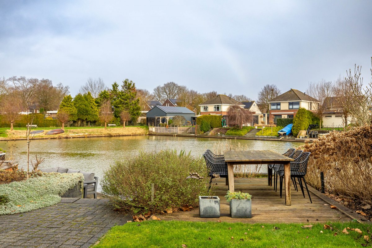 In 2012 is de woning aan de achterzijde uitgebouwd, wat heeft geresulteerd in een royale leefruimte (woonkeuken met open keuken) van maar liefst 68 m². De tuingerichte woonkamer biedt een prachtig uitzicht over het water. Via een schuifpui heb je toegang tot de achtertuin met eigen steiger, een heerlijke plek voor ontspanning, verkoeling en lange zomeravonden aan het water.