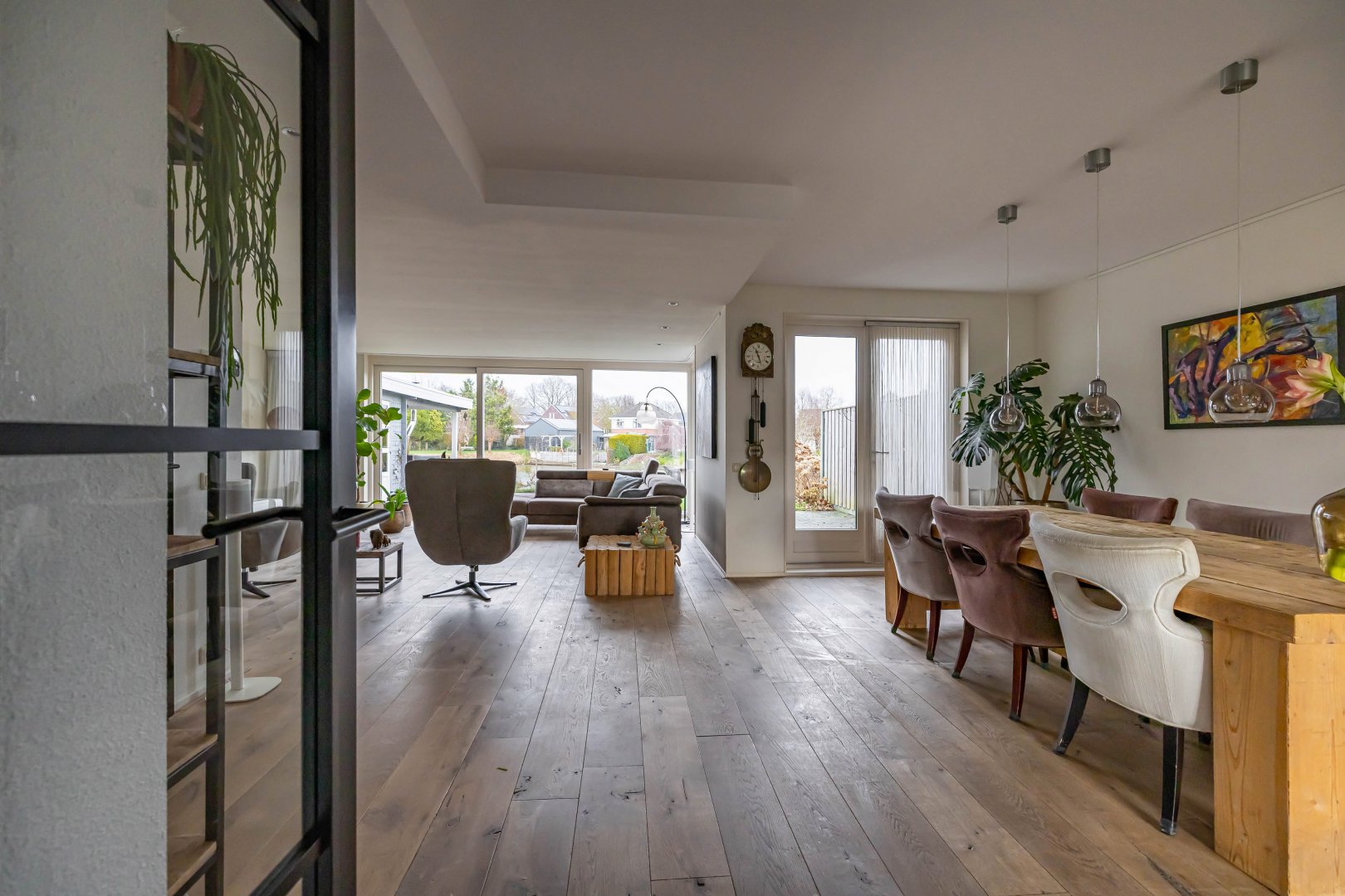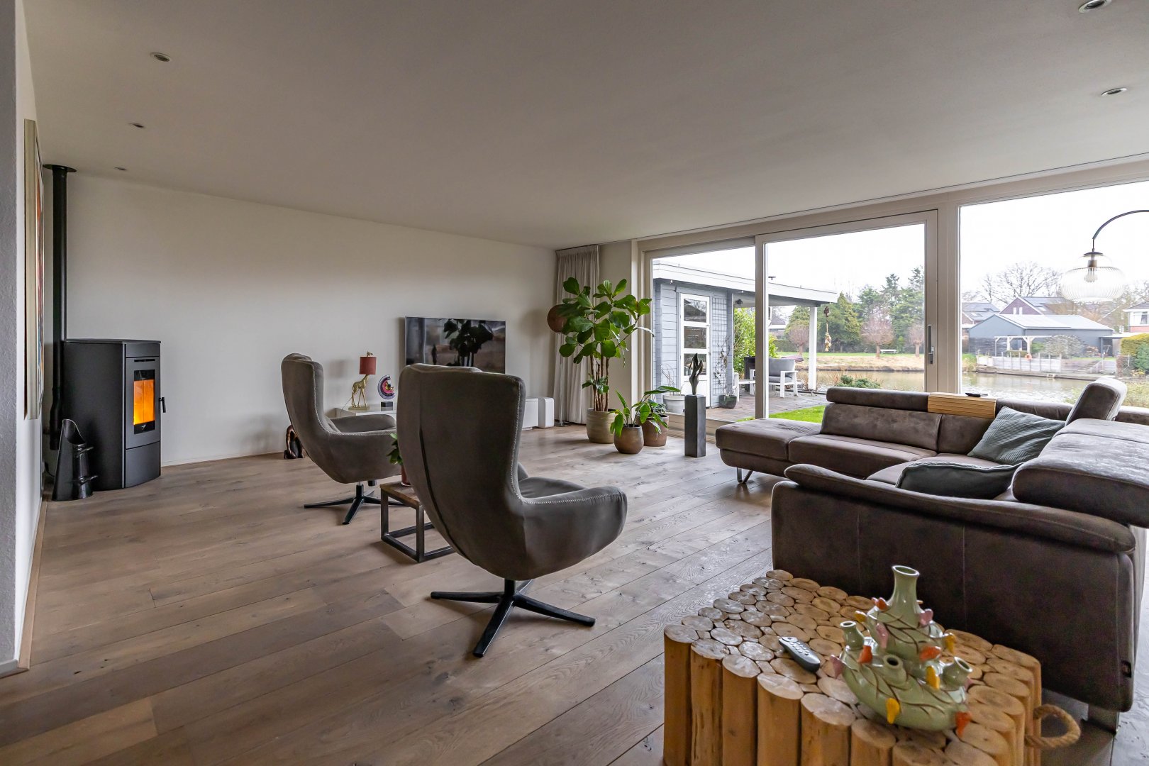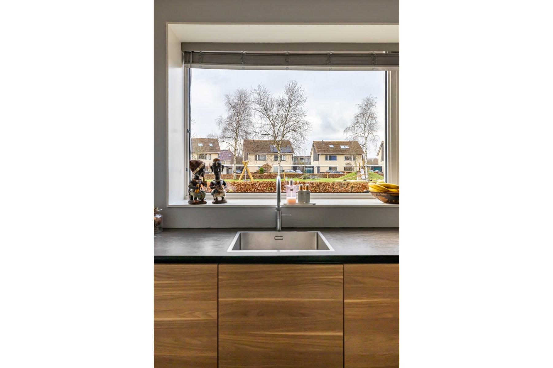 In 2012 is de woning aan de achterzijde uitgebouwd, wat heeft geresulteerd in een royale leefruimte (woonkeuken met open keuken) van maar liefst 68 m². De tuingerichte woonkamer biedt een prachtig uitzicht over het water. Via een schuifpui heb je toegang tot de achtertuin met eigen steiger, een heerlijke plek voor ontspanning, verkoeling en lange zomeravonden aan het water.