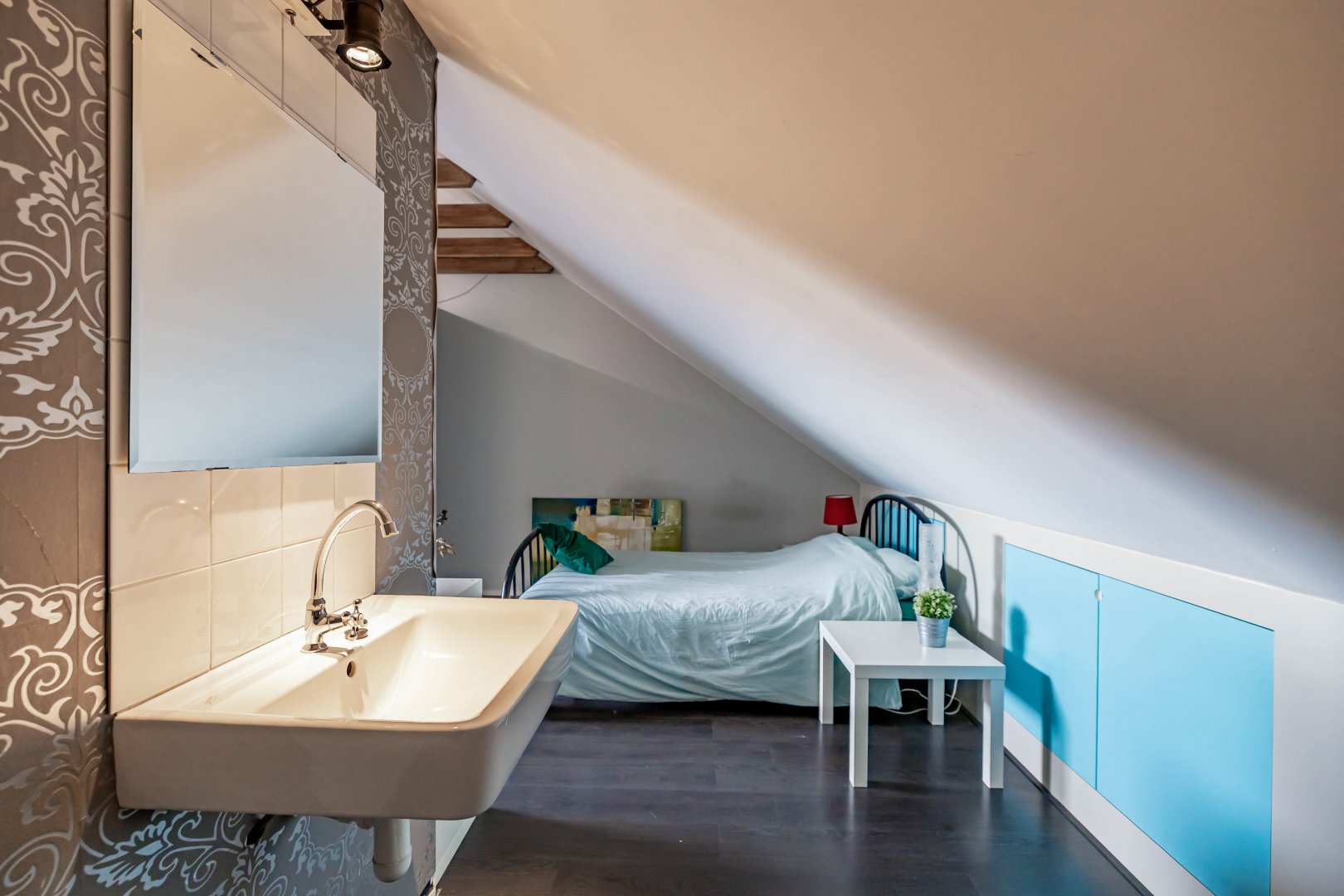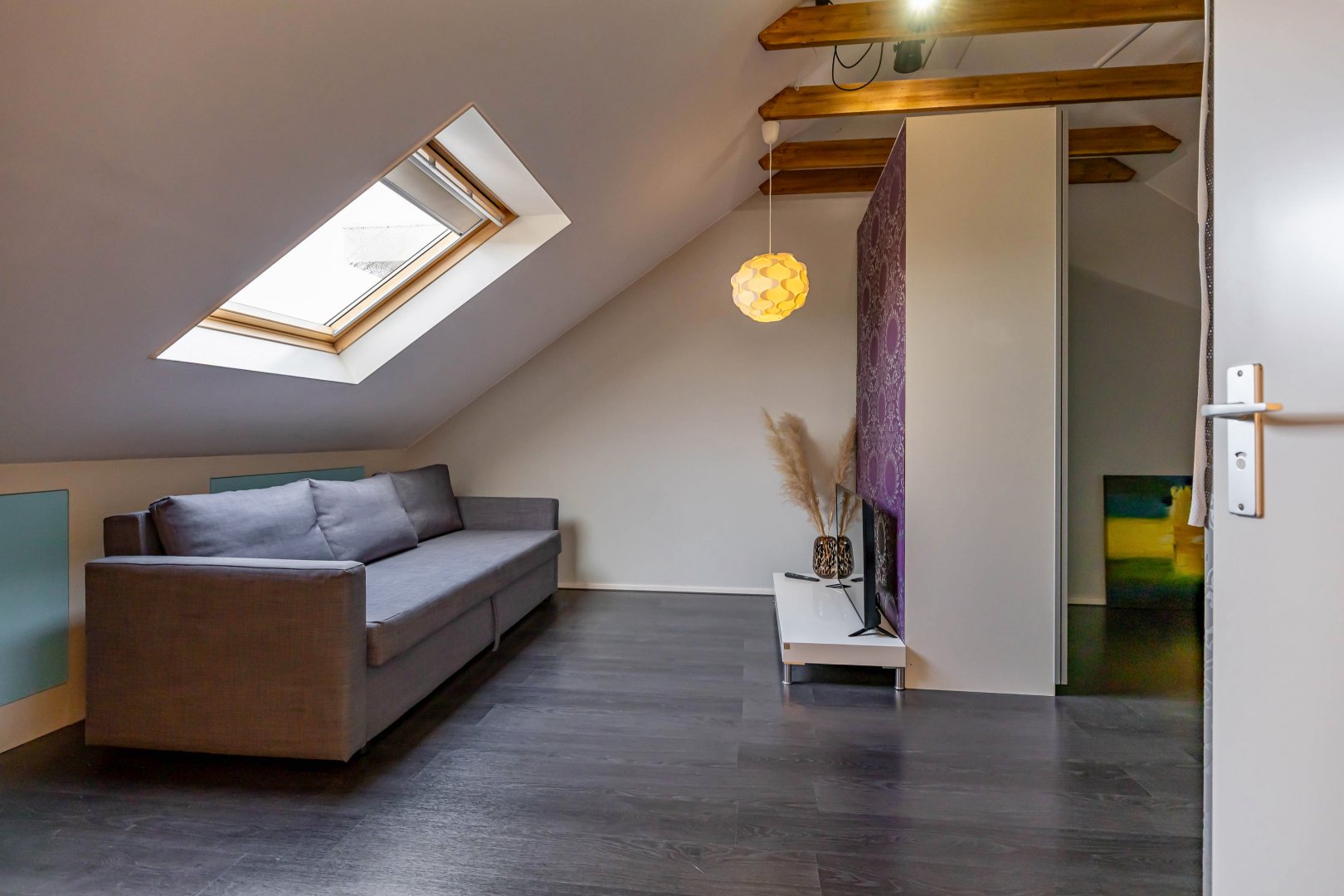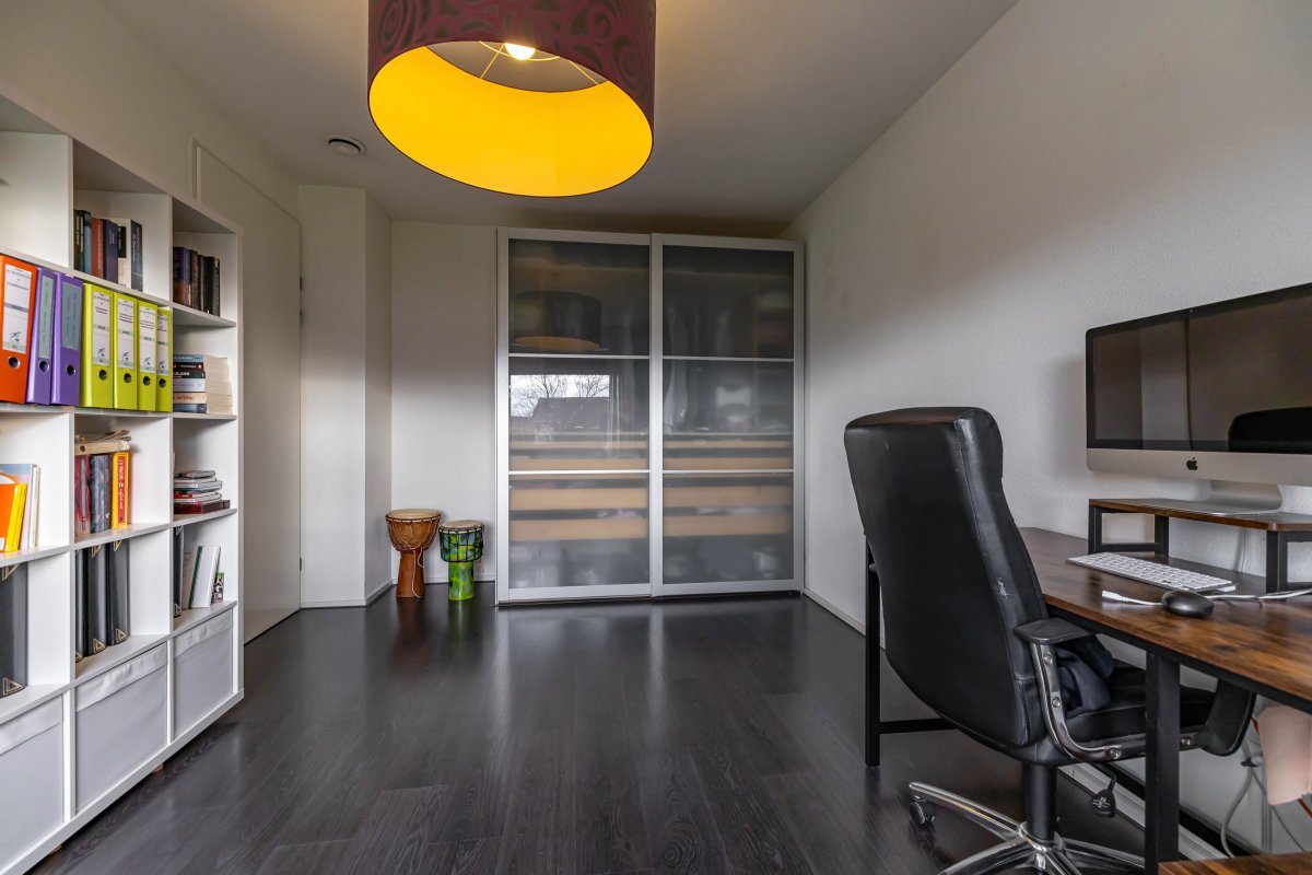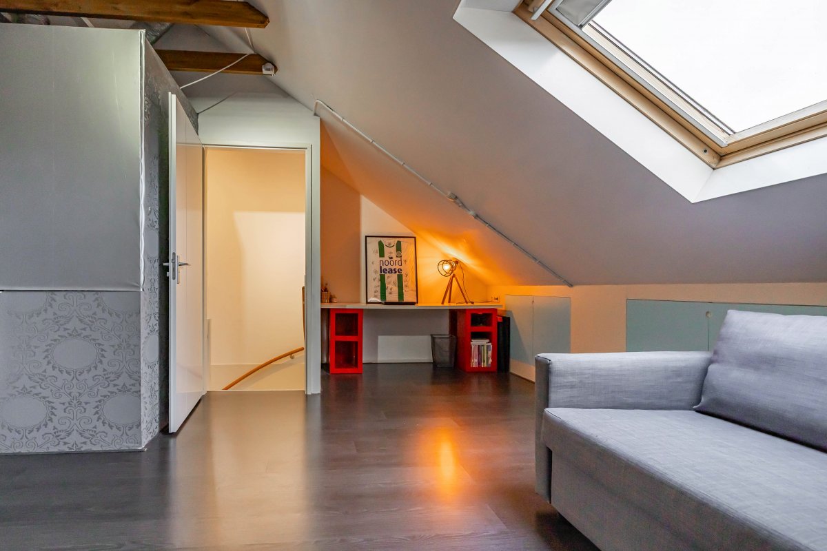 een badkamer, terwijl de ruime zolderkamer (25 m²) uitstekend geschikt is als vierde slaapkamer, werkruimte of hobbykamer.