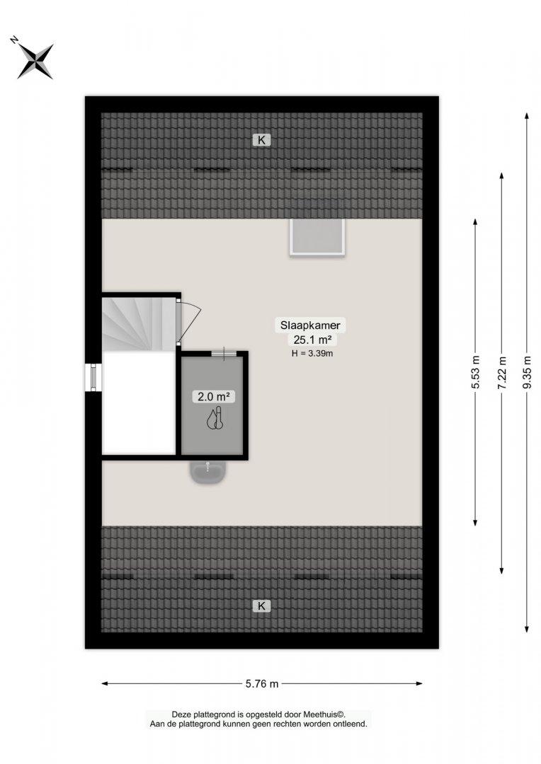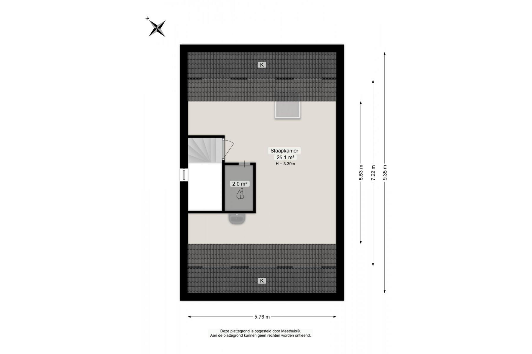 zolderkamer van circa 25 m²; stookruimte.