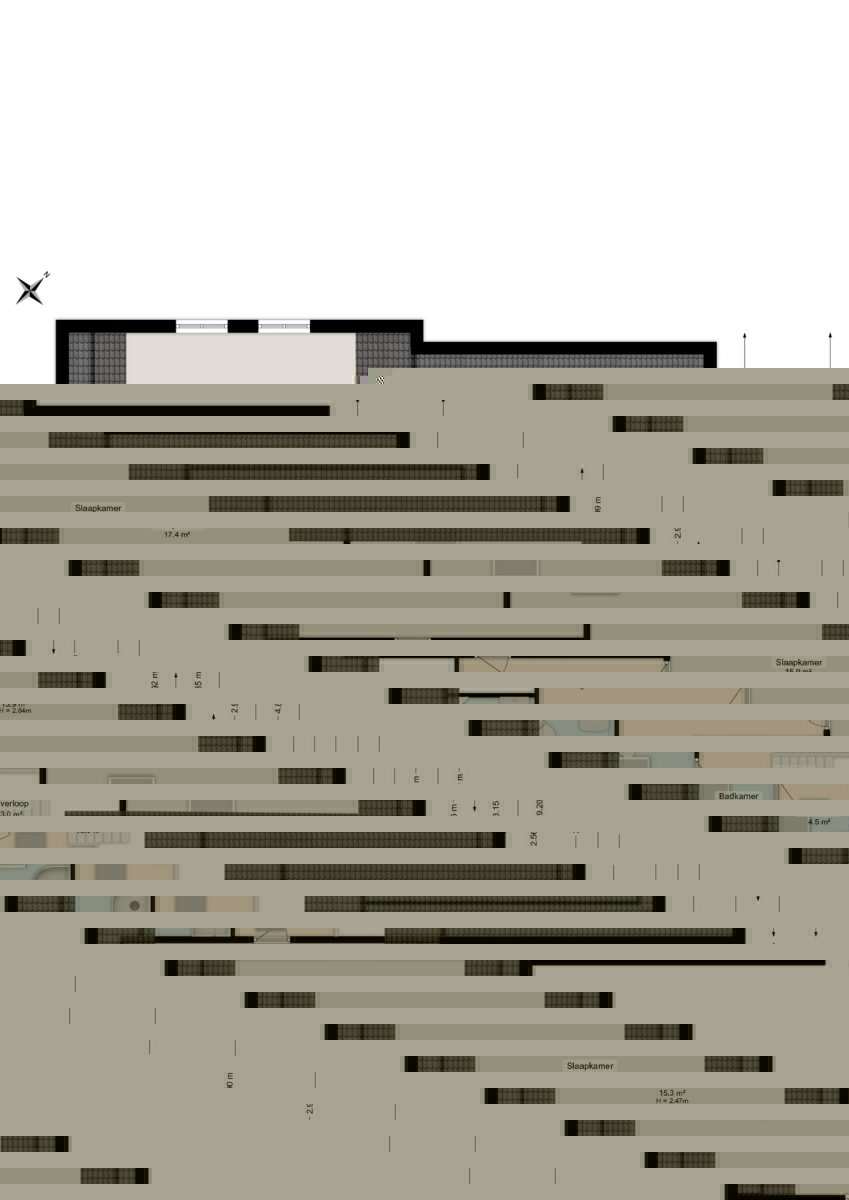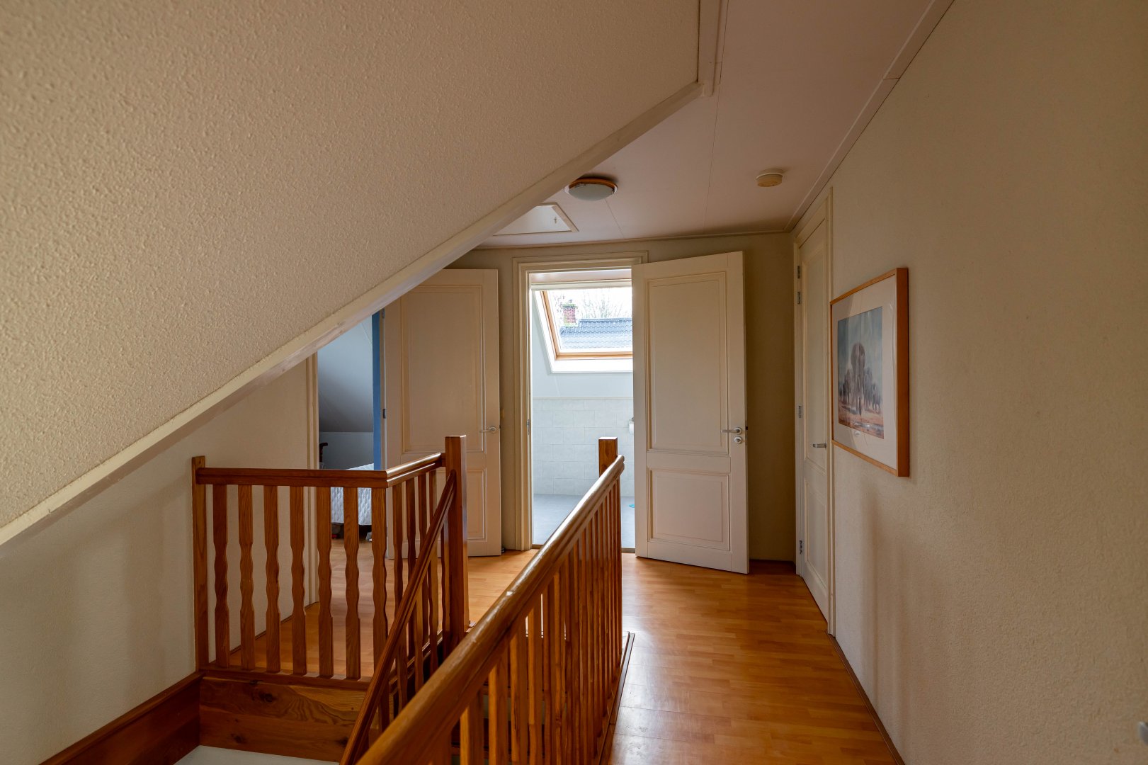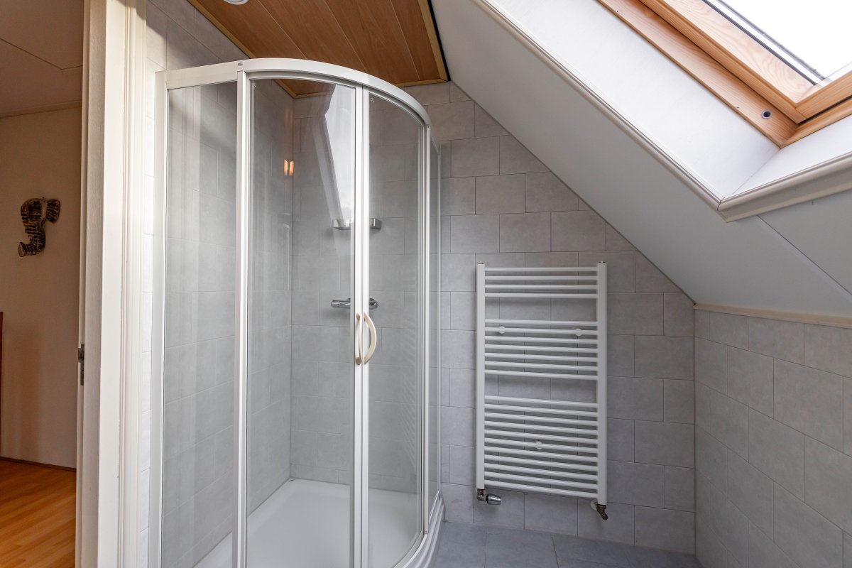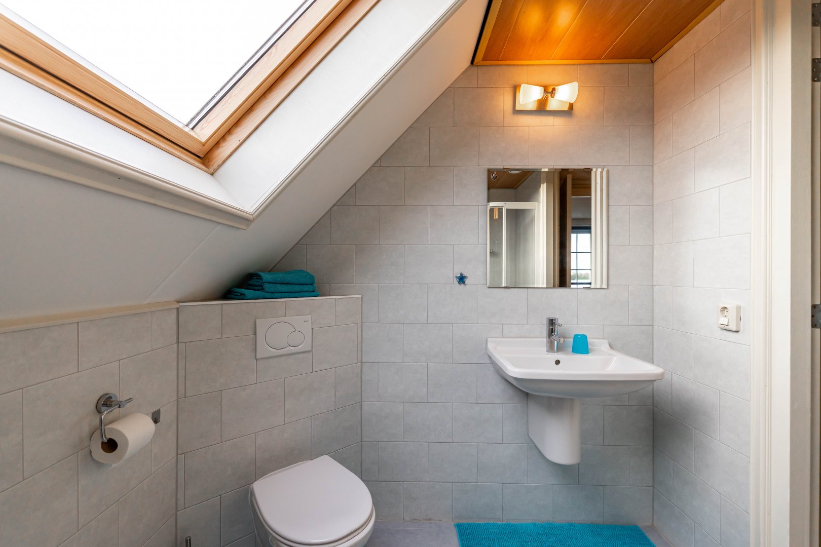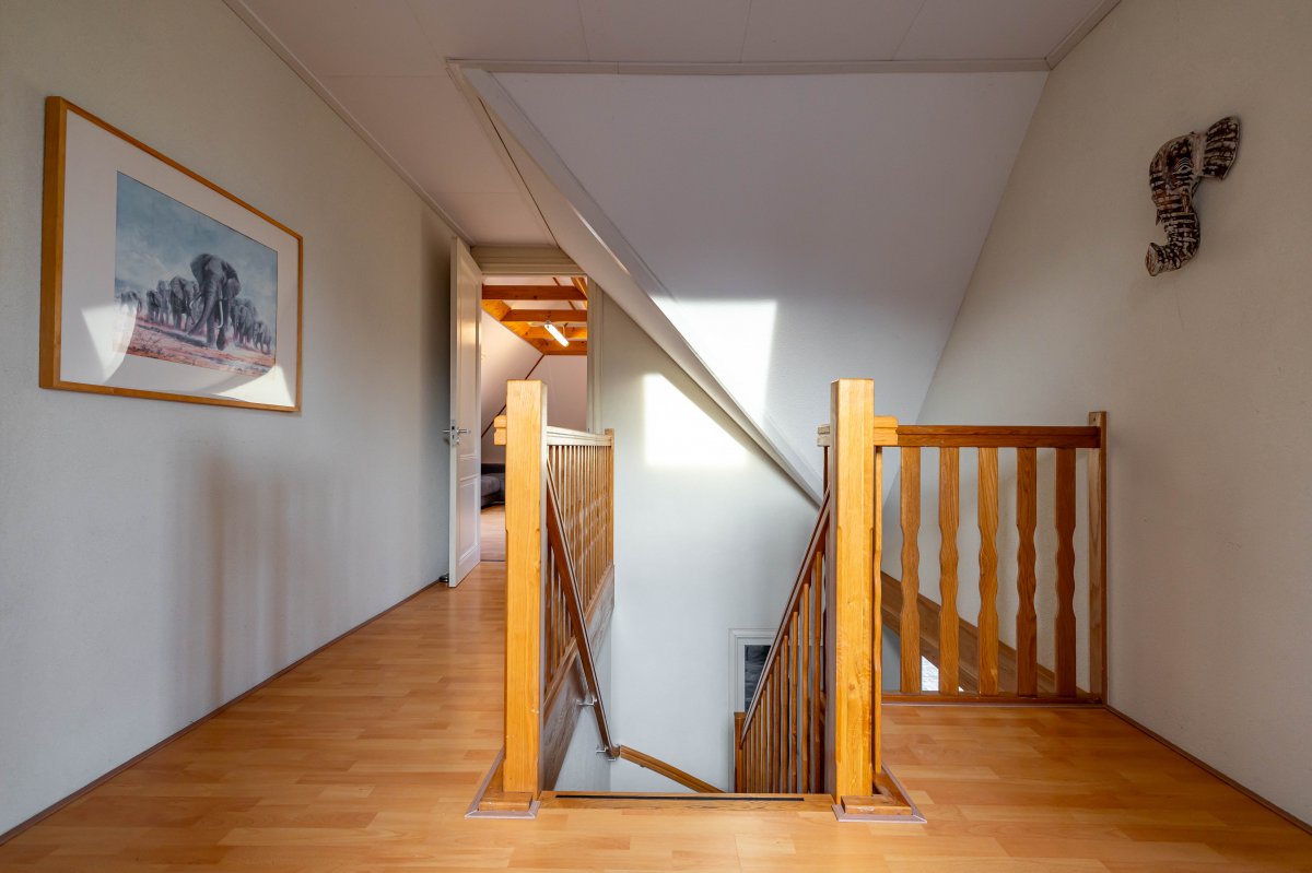 overloop; drie slaapkamer van respectievelijk circa 15, 16. en 17 m²; tweede badkamer met toilet, douche en wastafel; vanaf de overloop is er via een vlizotrap toegang tot een ruime bergzolder.