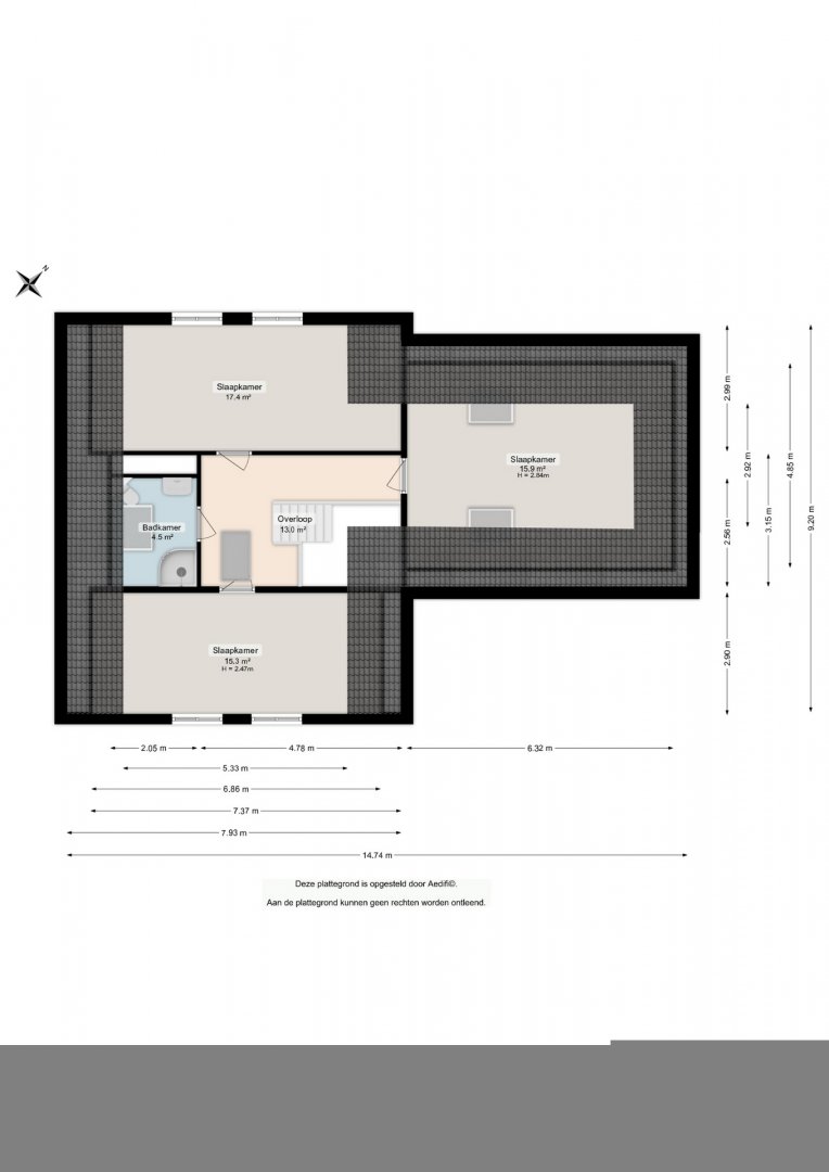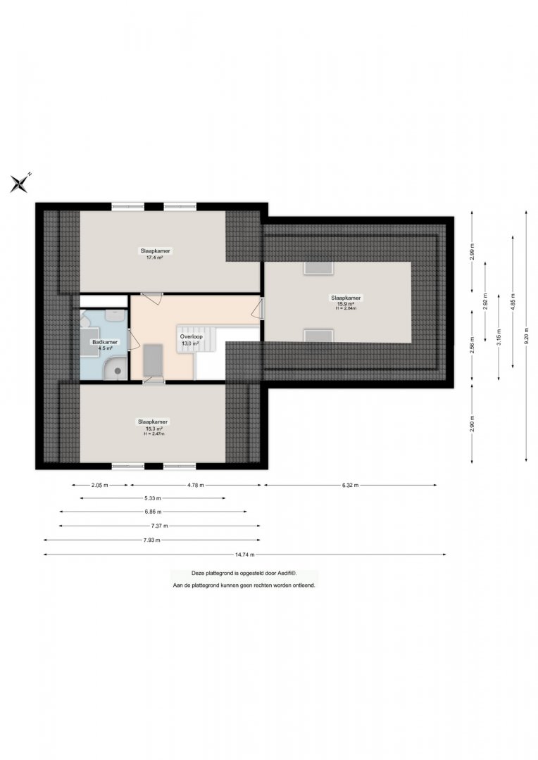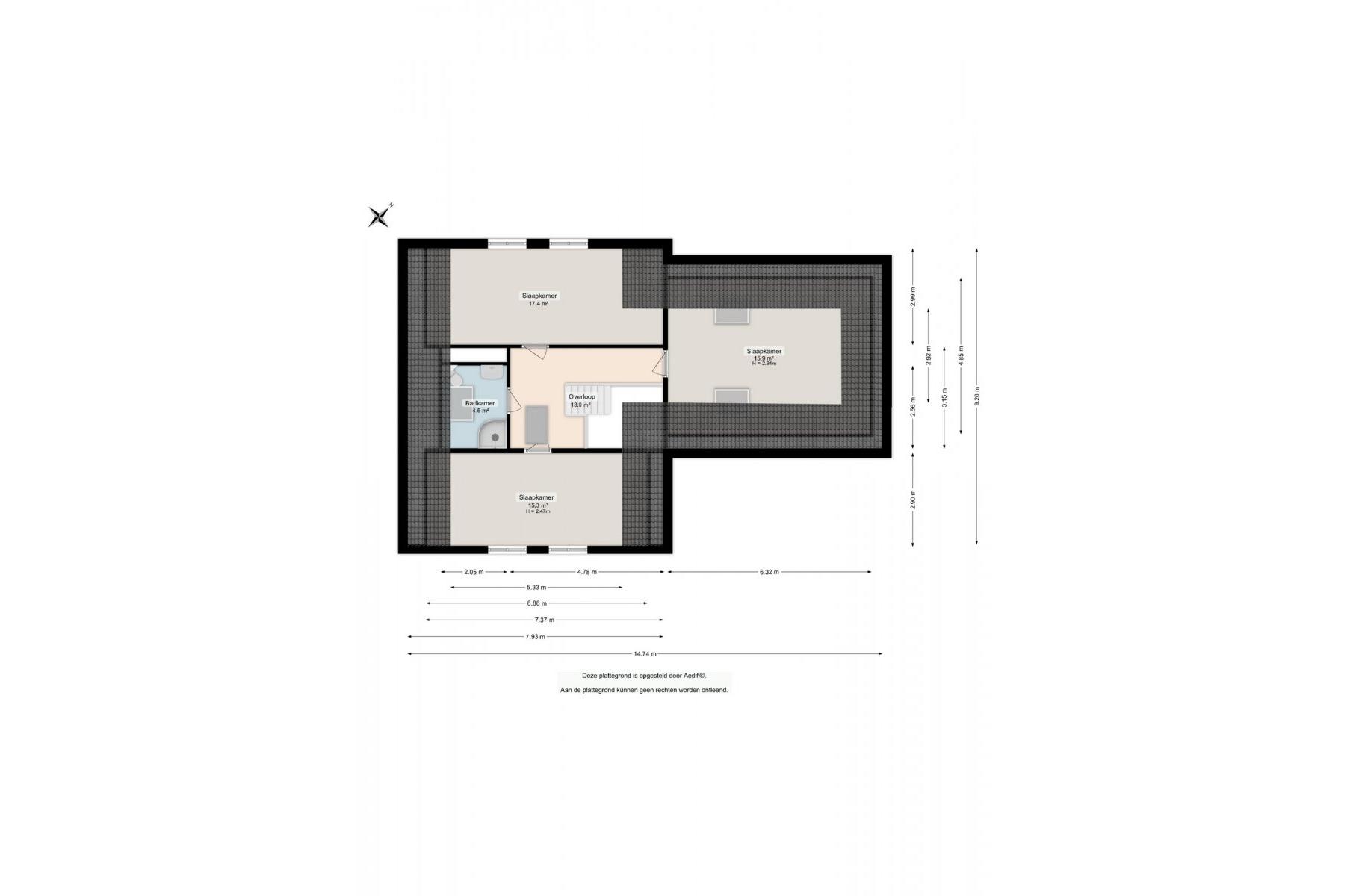 Op de verdieping bevinden zich nog eens drie ruime slaapkamers van 15, 16 en 17 m² en een tweede badkamer.