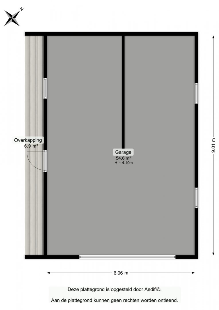 De vrijstaande schuur/garage is 55 m² groot, biedt eventueel plaats aan vier auto's.