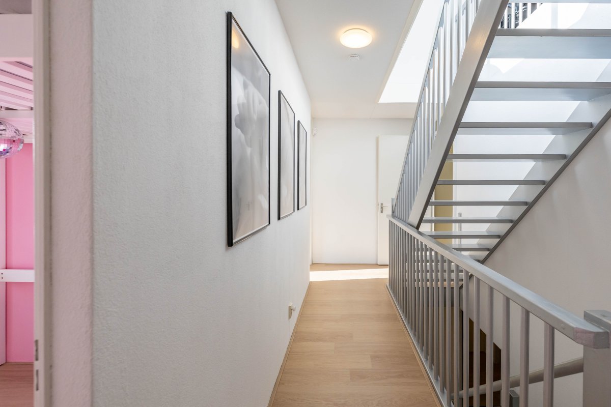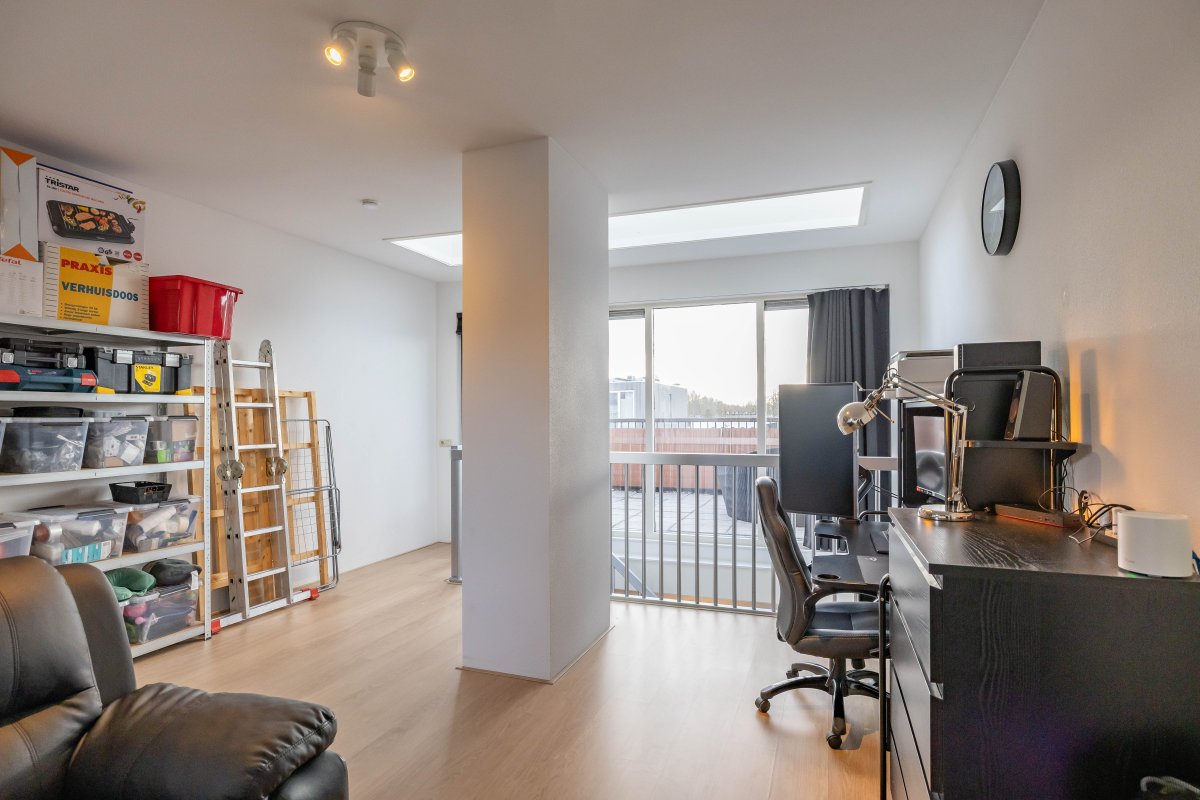 Via een vaste trap bereik je de tweede verdieping. Hier bevindt zich een ruime, open en multifunctionele ruimte (circa 29 m²)die naar wens kan worden ingericht, bijvoorbeeld als extra slaapkamer, werkruimte of hobbykamer.