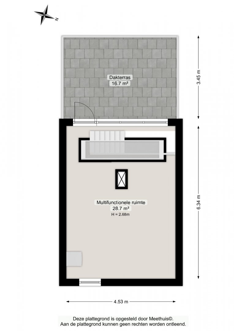 aansluitend bevindt zich het dakterras op het westen, circa 17 m²