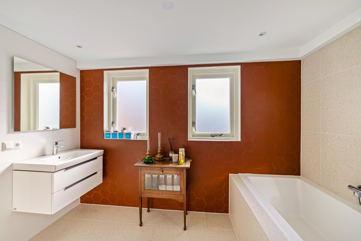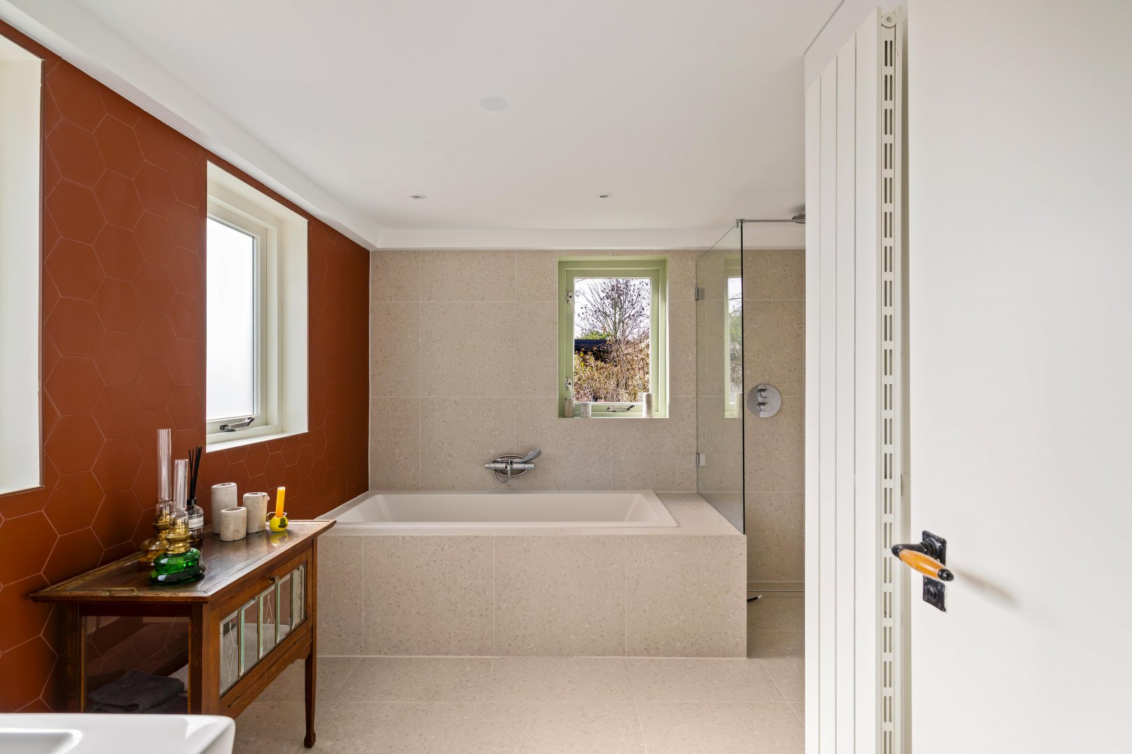 Tevens is vanuit de bijkeuken een luxe badkamer en separaat toilet op de begane grond te vinden.