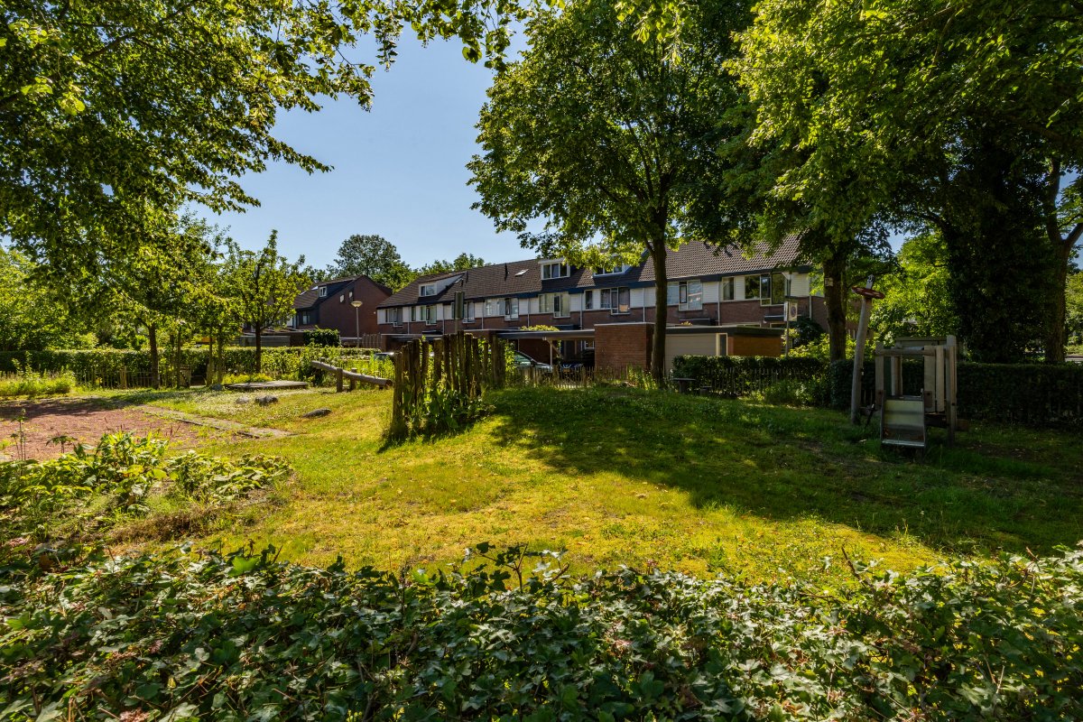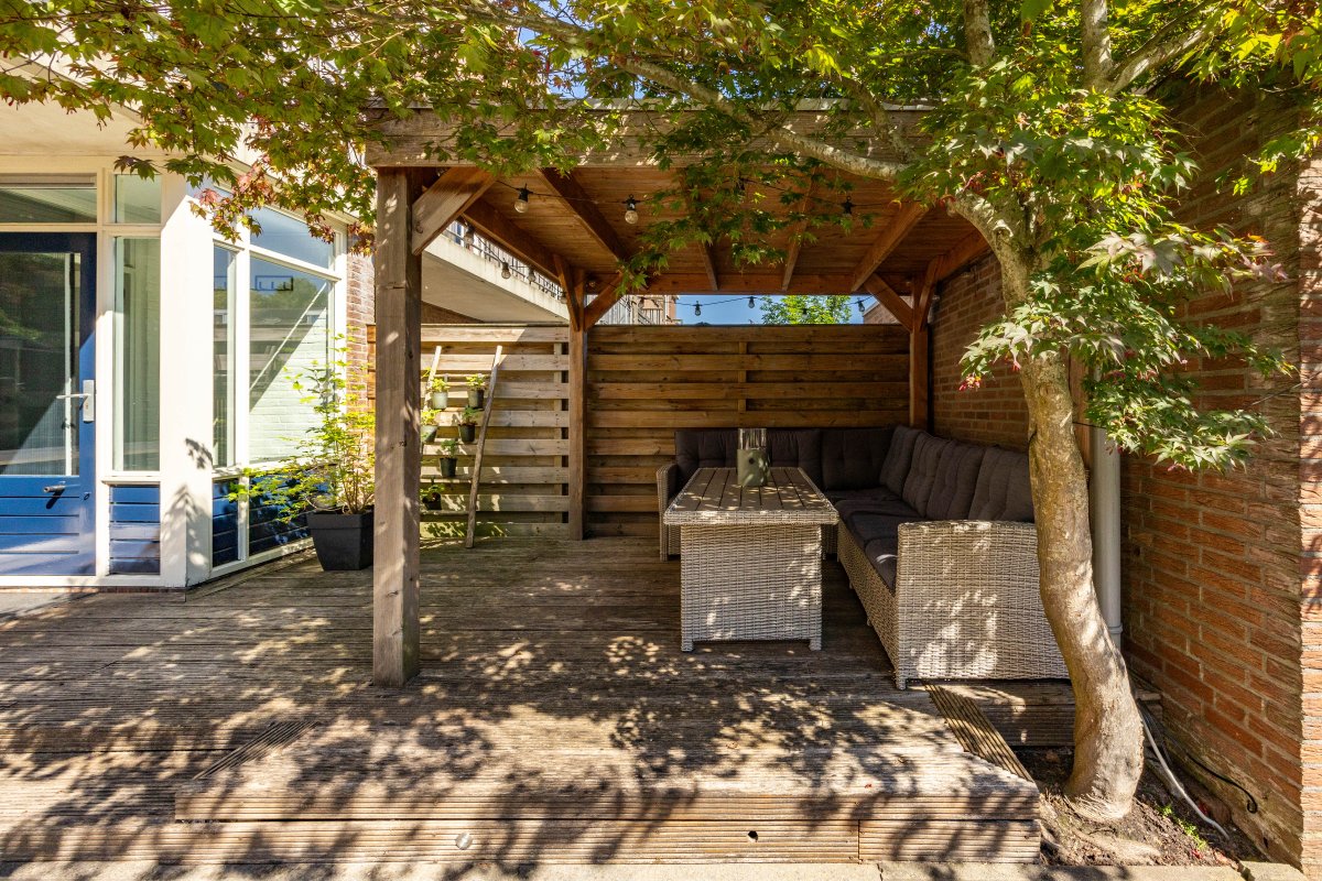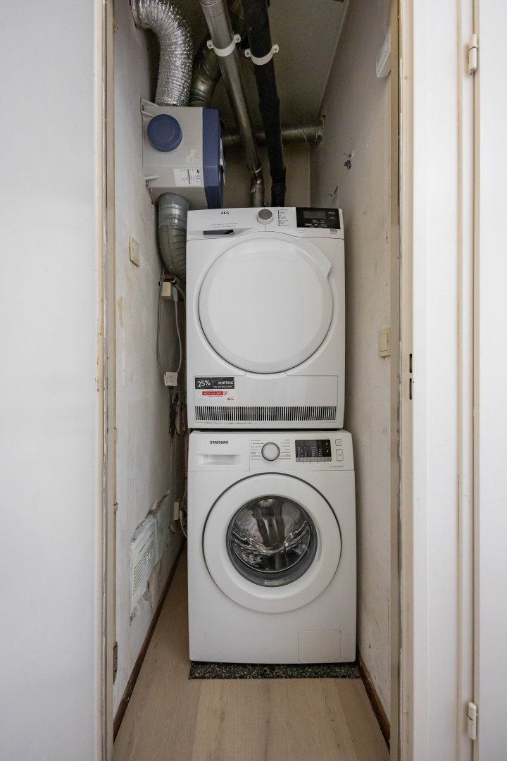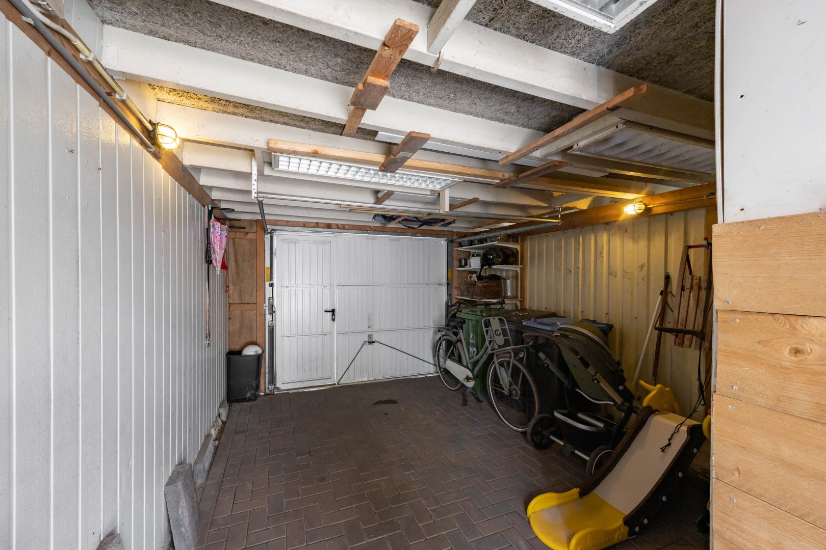De achtertuin is onderhoudsvrij, heeft een gezellig terras met overkapping en geeft toegang tot een stenen berging en een afgesloten carport in gebruik als garageruimte. In vergelijk tot andere appartementen is hier uitzonderlijk veel bergruimte aanwezig!