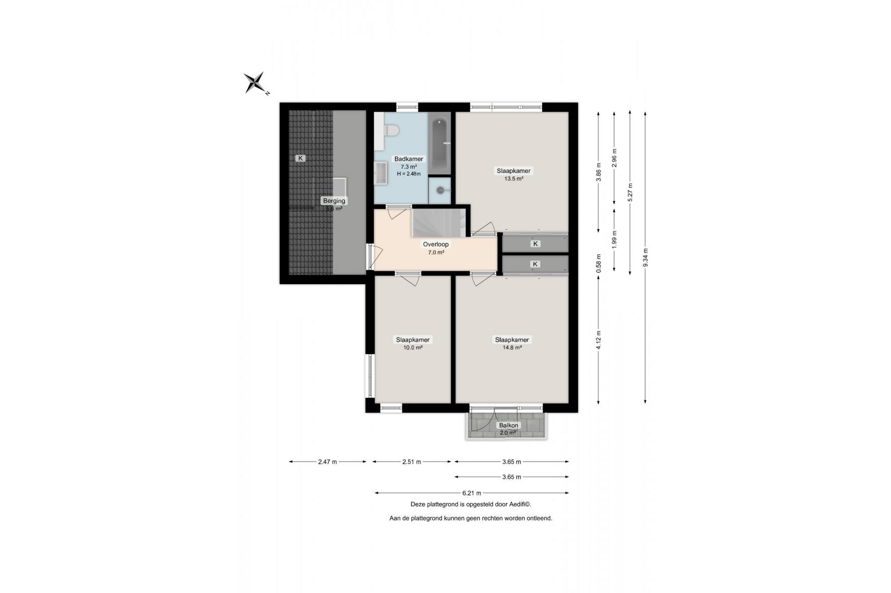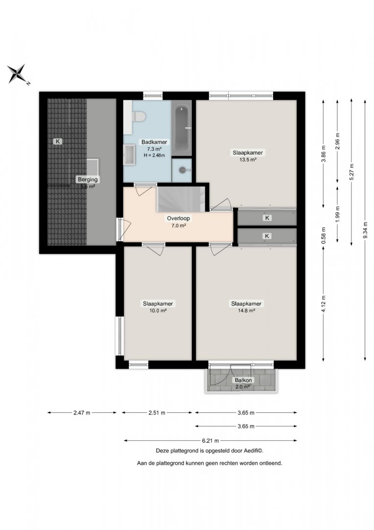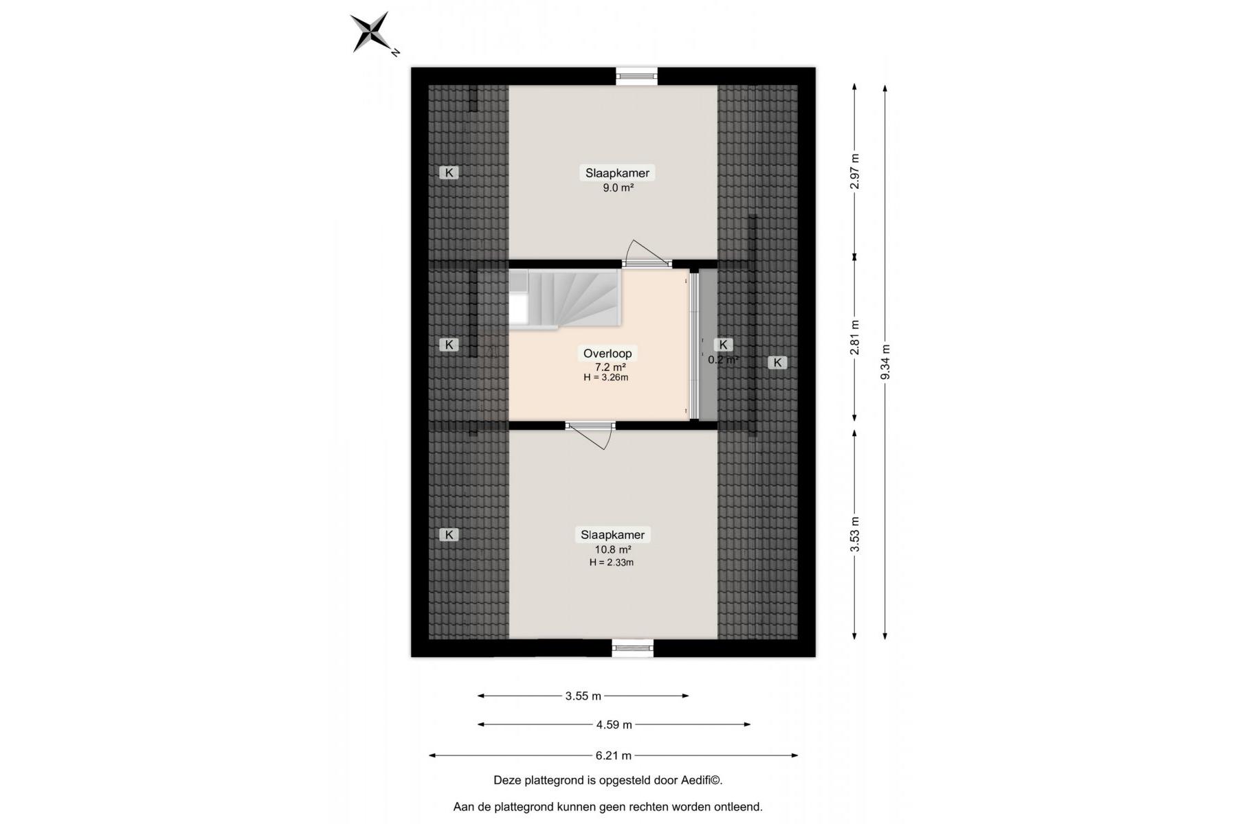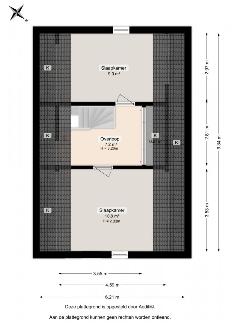 overloop; twee slaapkamers respectievelijk circa 9 en 11 m².