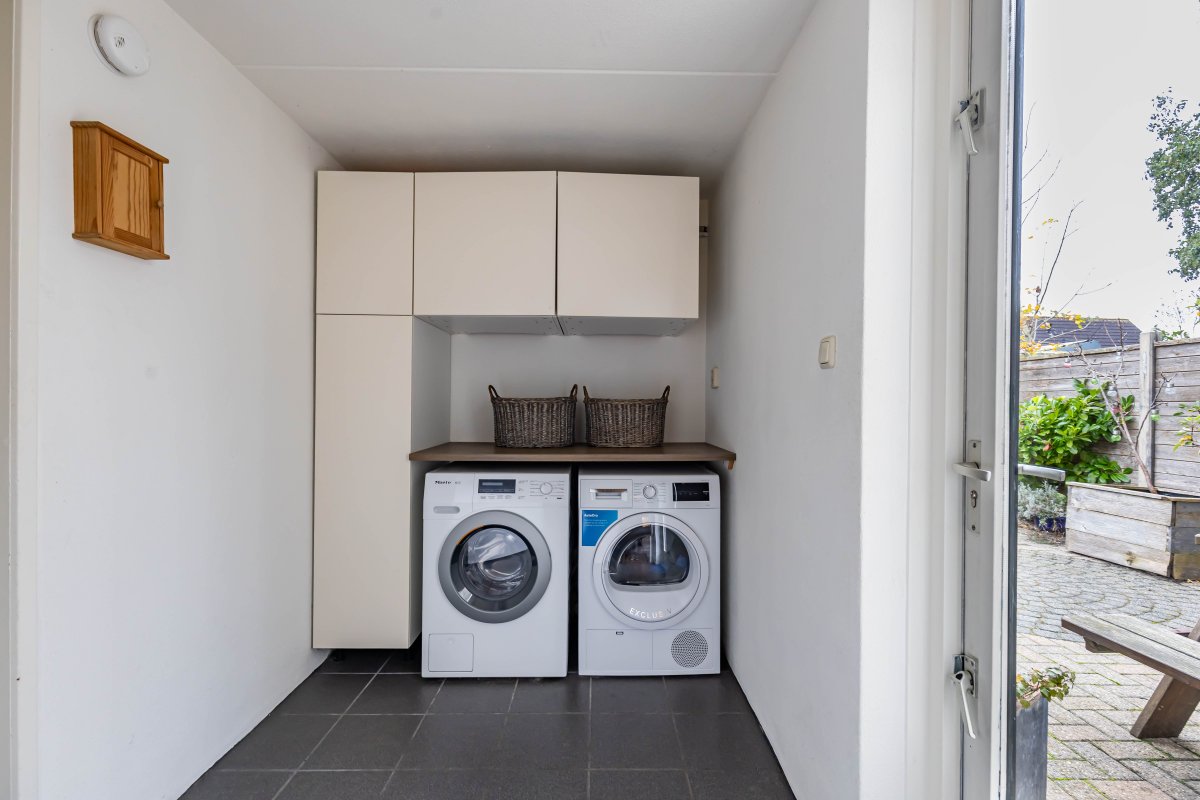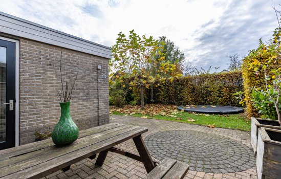 De woning beschikt over een aangebouwde bijkeuken, van waaruit de extra grote garage te bereiken is. Perfect voor extra bergruimte, het stallen van fietsen of het realiseren van een klusruimte.